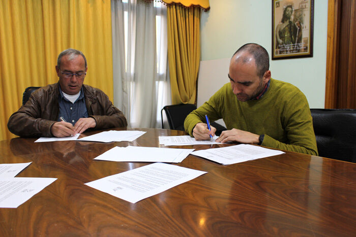 El alcalde de San Juan de Aznalfarache, Fernando Zamora y el coordinador de Asamblea de Cooperación por la Paz en Andalucía (ACPP), José Mª Ruibérriz, rubricaron el convenio entre estas dos instituciones que mantiene la colaboración en el proyecto de la moneda Ossetana. Se trata de la tercera renovación de este convenio que supone que el Ayuntamiento destina una partida de 20.000 euros para financiar esta moneda social que llega ya a unas 300 personas en la localidad.