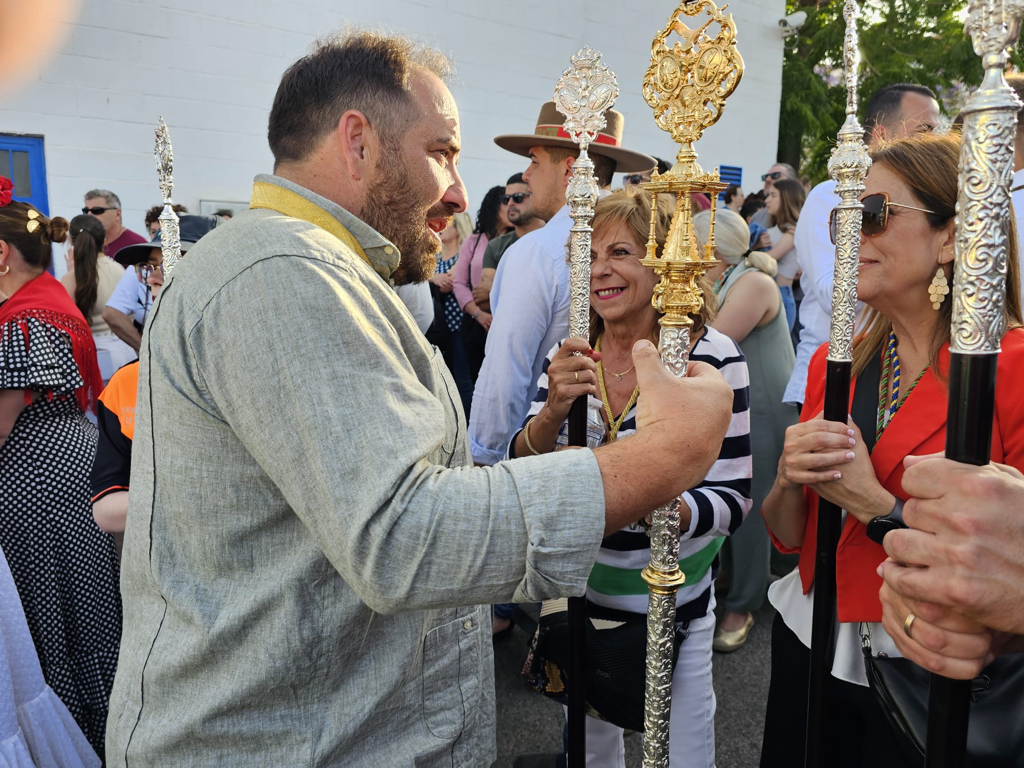 Un caminar donde vecinos y vecinas recibían en las calles la llegada del Simpecado. A su salida desde la Hermandad de los Ángeles, la alcaldesa de San Juan, María Luisa Moya, la delegada de Tradiciones y Culturas, Rocío Amado y representantes del equipo de Gobierno les daban la bienvenida tras el regreso al municipio.