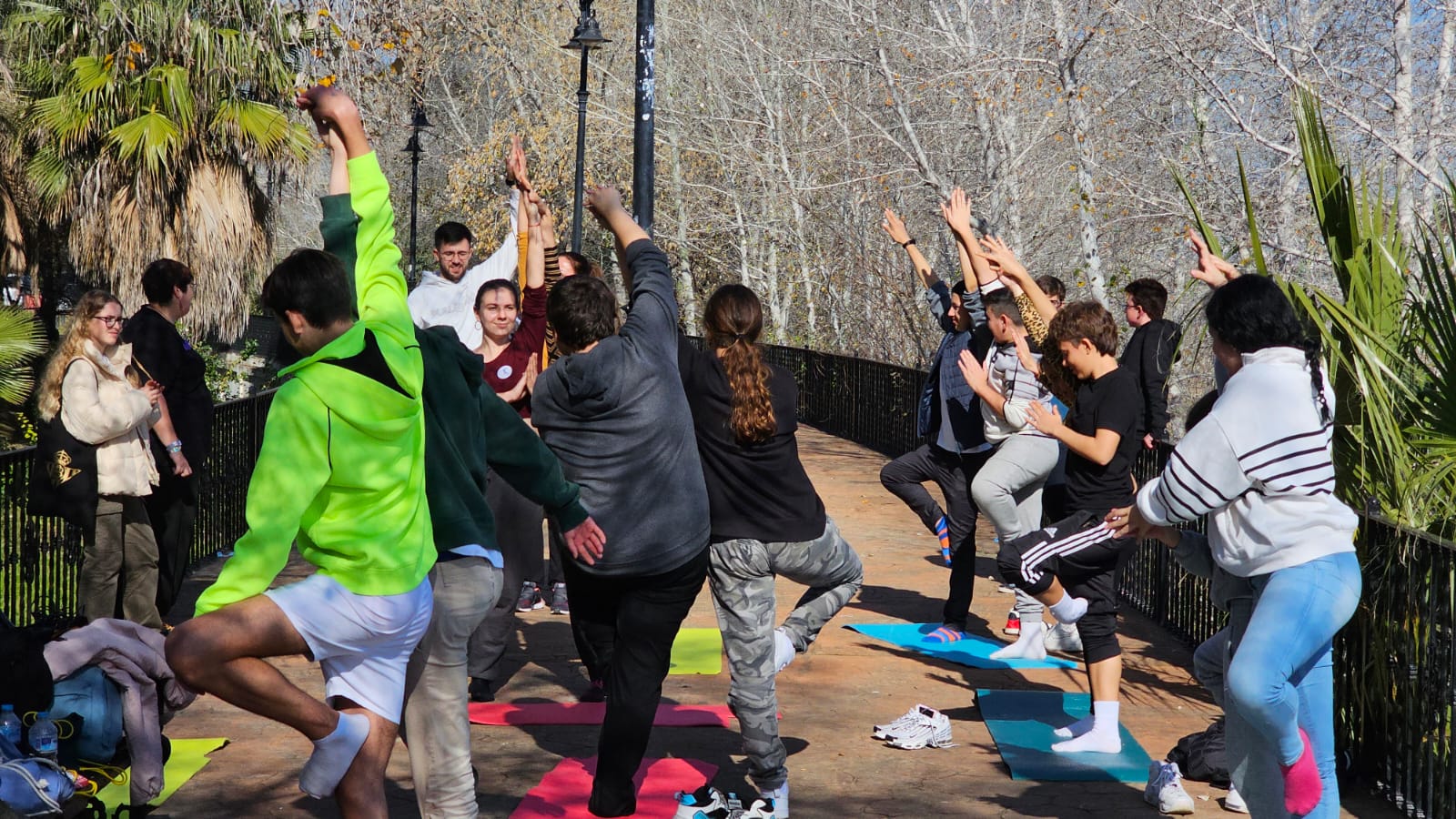 La iniciativa surge en este centro educativo de la mano de varios profesores, entre ellos su entonces director, Sotero Hernández y el actual, David Perea. «Nos lo planteamos como una forma de conmemorar el Día Escolar de la Paz, pero decidimos que sería bueno invitar al resto de centros y promover una jornada de convivencia entre todos ellos». Casi una década después el resultado es una jornada de alegría en un entorno seminatural como el carril que lleva desde el Paseo Fluvial Virgen del Carmen hasta Camas.