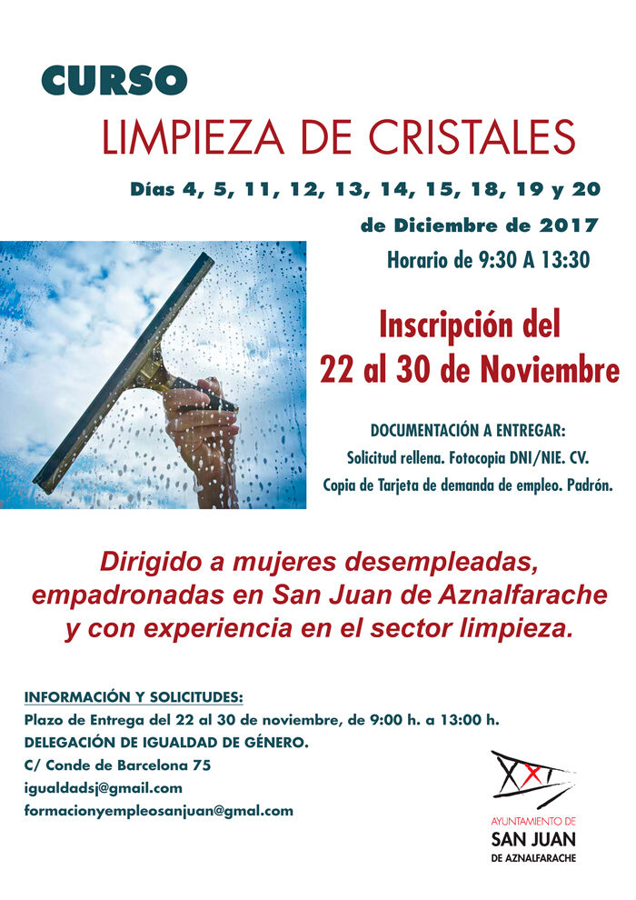 El curso de limpieza de cristales se impartirá en el aula de Doctor Fleming y está organizado por el
