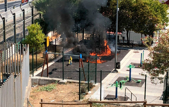 El incendio se ha iniciado alrededor de las 13:00 y todo apunta a que ha sido intencionado, por lo que desde el área de Seguridad Ciudadana se solicita la colaboración de la ciudadanía para tratar de identificar a los responsables. La zona de juegos infantiles de esta barriada ha quedado inutilizada a pesar de la rápida intervención de los bomberos.