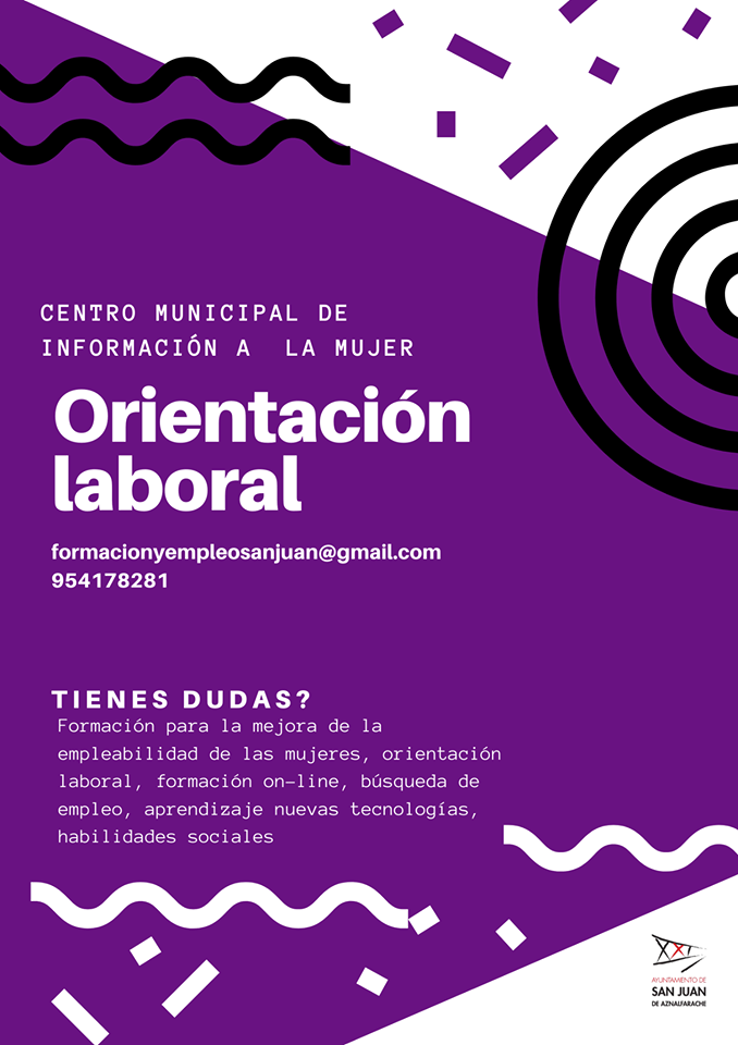 El Ayuntamiento de San Juan de Aznalfarache mantiene activos los servicios que habitualmente ofrece el Centro Municipal de Información a la Mujer (CIMM): asesoramiento jurídico, orientación laboral y atención psicológica. Todos los servicios se dirigen a mujeres de cualquier edad que se atienden por teléfono o por email.
