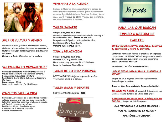 Las apuestas tradicionales y siempre demandas como el Aula de Cultura y Género, Sanarte, Yoga y