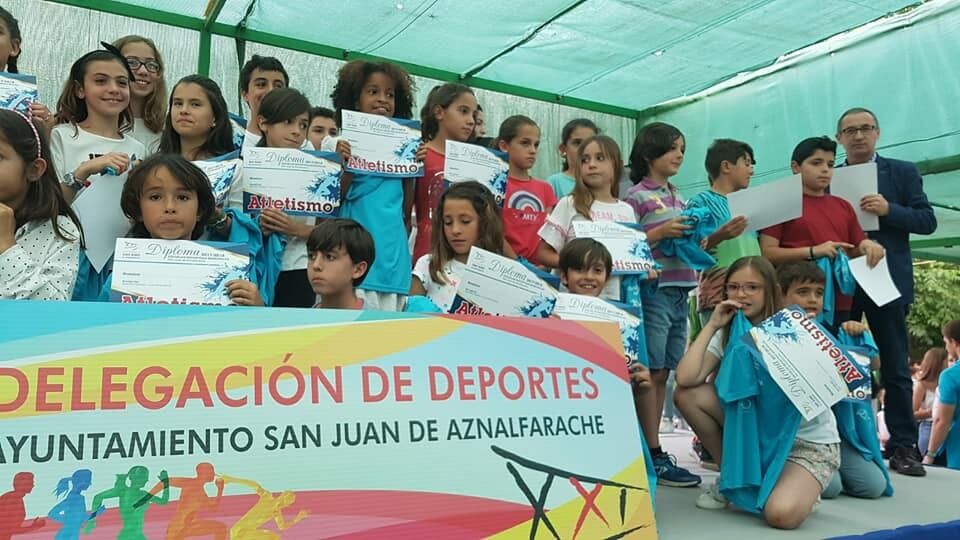 Las Escuelas deportivas municipales de San Juan de Aznalfarache clausuraron una nueva temporada con la participación de unos 800 niños y niñas en una gran fiesta de despedida final. Desde el pasado mes de octubre las instalaciones deportivas de San Juan de Aznalfarache han estado llenas de actividad.