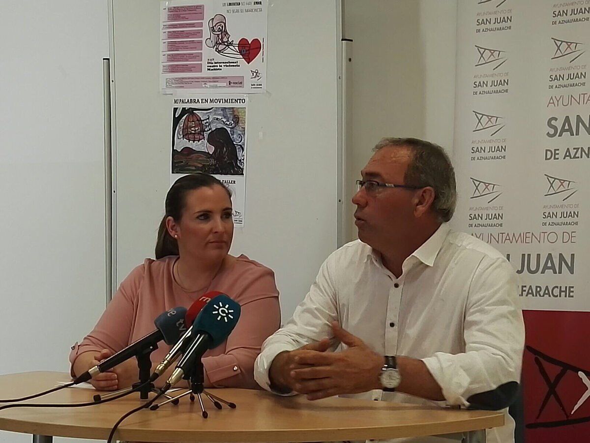 La Directora del Instituto Andaluz de la Mujer, Elena Ruíz y el alcalde de San Juan de Aznalfarache, Fernando Zamora han presentado esta mañana ante los medios de comunicación el balance del primer semestre del año del Servicio de Atención Psicológica a hijas e hijos menores de mujeres víctimas de violencia de género.