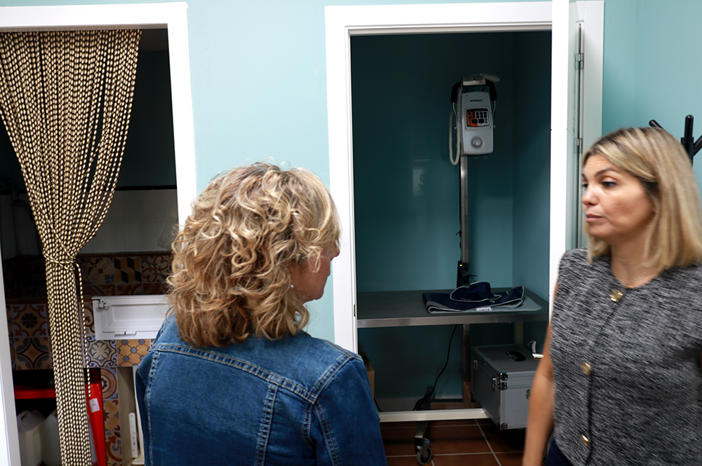Sala de Rayos x, mesa de operaciones o un ecógrafo son parte del equipo de esta clínica que recibe a los animales y se encarga de la recuperación de los que llegan en mal estado. Varias naves, muy amplias, acogen a los animales en dependencias individuales en la mayor parte de los casos. Durante el día, sobre todo aprovechando los momentos de buen tiempo, salen a disfrutar de las instalaciones, dos praderas de cesped y varias zonas de juego y adiestramiento. Los cachorros que ocupan una enorme jaula central llaman inmediatamente la atención de los visitantes. «Son muy cariñosos, se ve que están acostumbrados al trato con las personas», comenta la alcaldesa.