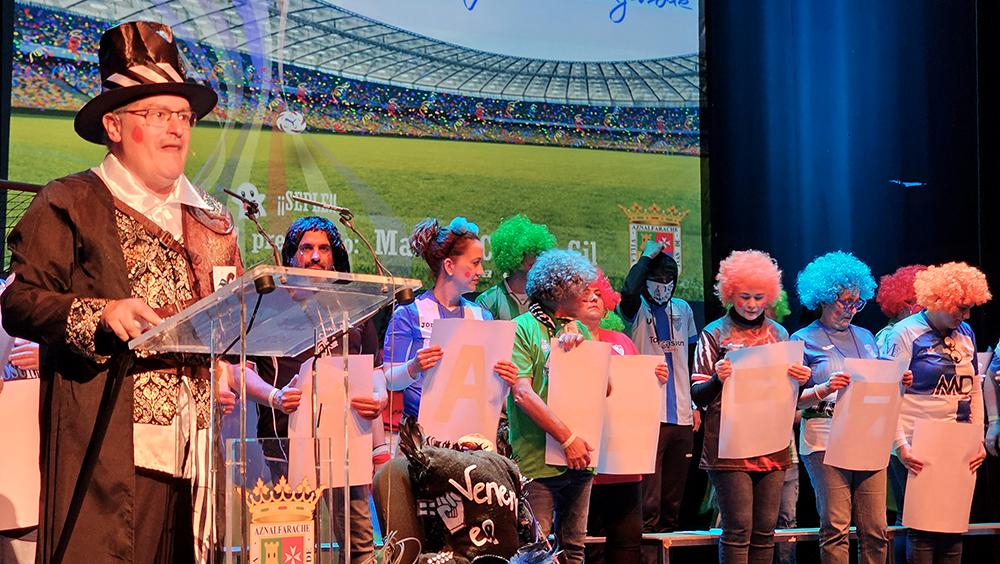El pregonero tuvo palabras de cariño para todas las personas que han colaborado con él en este recorrido y se despidió con una segunda declaración de amor, la primera fue para María José, esta vez a San Juan de Aznalfarache. «Nací sevillista. No nací en San Juan, ni en febrero. Pero, seguro, seguro, seguro, que moriré sevillista, sanjuanero y carnavalero. Y desde hoy, pregonero».