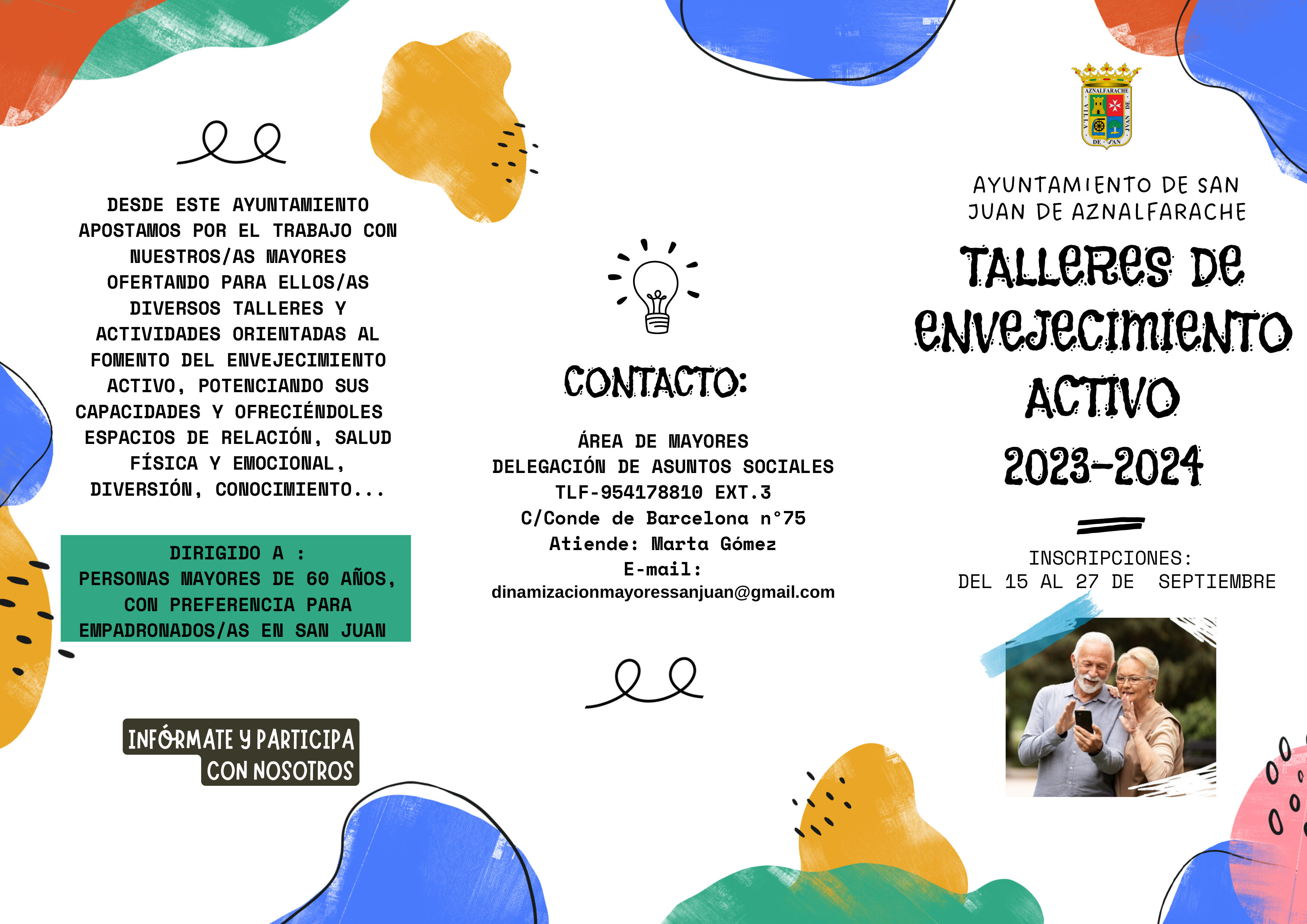 Los mayores de San Juan de Aznalfarache tienen a su disposición un amplio programa de talleres enmarcados dentro del programa de Envejecimiento Activo que desarrolla el Ayuntamiento de la localidad, a través del área de Mayores. El plazo de inscripción comienza este viernes 15 de septiembre y permanecerá abierto hasta el próximo 27 de septiembre.