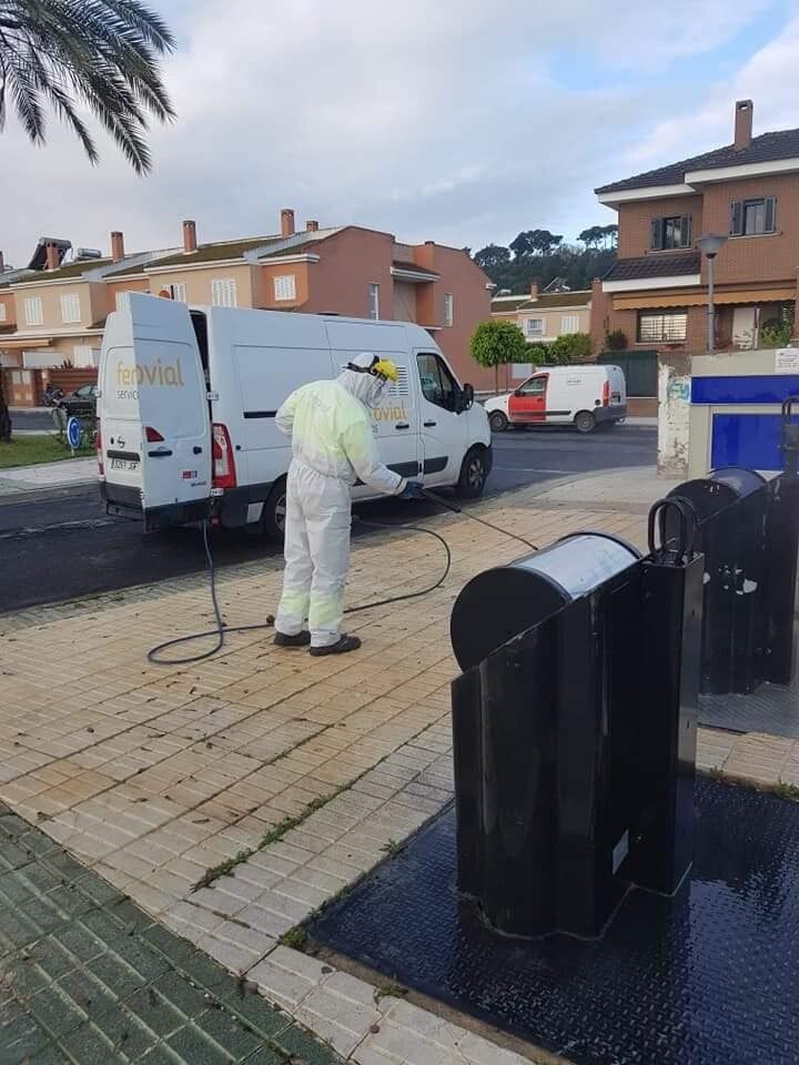 En los próximos días se incorpora un nuevo camión de Ferrovial que se realiza estos trabajos en zonas peatonales donde no se puede acceder al otro vehículo que se dedica a la desinfección de los puntos limpios del mun icipio.