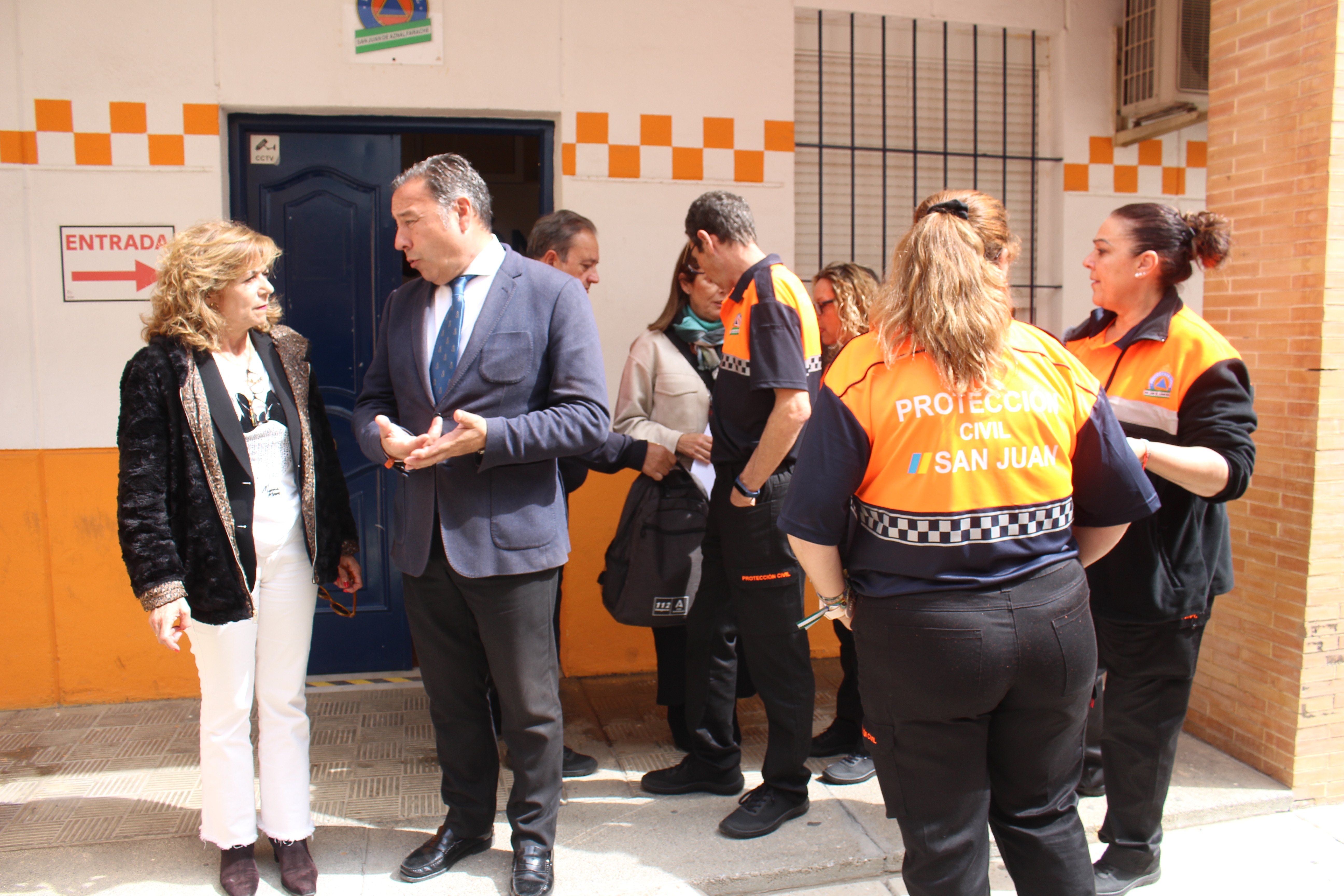 Un total de 15 voluntarios y un aspirante conforman actualmente la Agrupación de Voluntarios de Protección Civil de San Juan de Aznalfarache que presta sus servicios en los diferentes eventos que se desarrollan en la localidad. Una labor que tanto la alcaldesa, Mª Luisa Moya, como el delegado de Gobierno, Ricardo Sánchez, destacaron durante la visita a las instalaciones de la Agrupación.