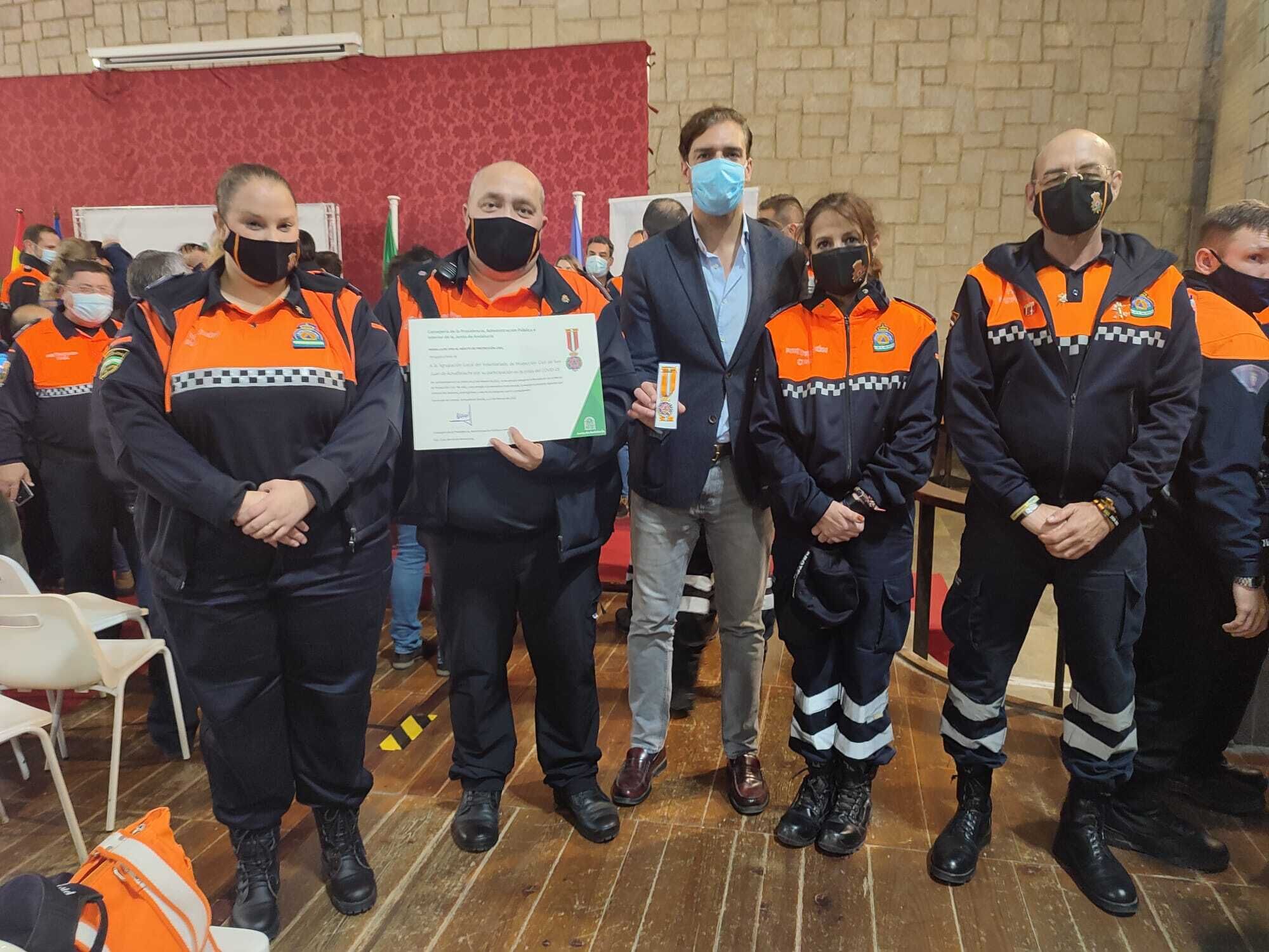 Se ha destacado la gran labor de nuestros voluntarios que han puesto al servicio su vida al servicio de la ciudadanía en los momentos más duros de la pandemia. Joaqueín Ayuso coordinador de la Agrupaciónde Voluntarios ha recogido este merecido galardón. Han estado acompañado por el delegado de Seguridad Ciudadana José Alonso Garrido