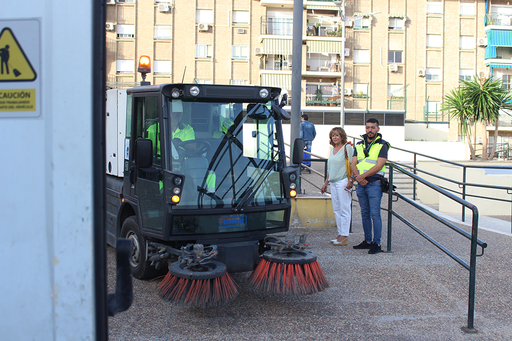 La alcaldesa de San Juan de Aznalfarache quiso agredecer el esfuerzo «y el cariño que ponen los trabajadores porque son vecinos del pueblo y eso hace, sin duda, que le pongan más ganas a su trabajo, porque viven aquí». María Luisa Moya, junto con el delegado de Limpieza, Regeración Urbana y Parques y Jardines, Ricardo Ruiz, acudieron a la Plaza de Extremadura, para seguir el desarrollo de los trabajos en la zona.