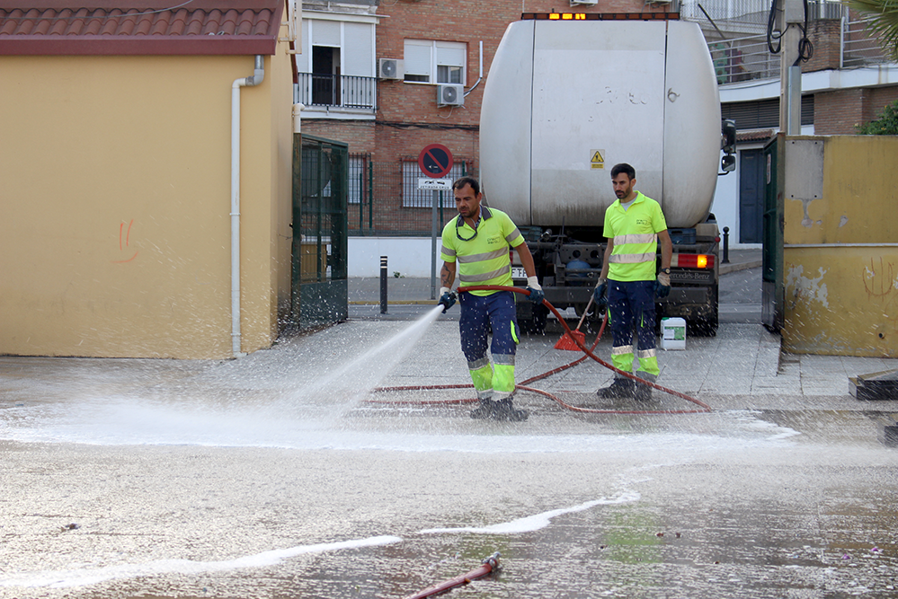 Durante al menos tres días de esta semana se va a actuar en todas las calles de la Barriada de Andalucía (Cooperativa) de la misma manera en que se han realizado las limpiezas generales en otras barriadas de la localidad. Los primeros trabajos se han realizado en la Plaza de Extremadura, zona muy concurrida, donde se ha actuado en los parterres, limpieza de suelos y riego a presión con agua no potable.