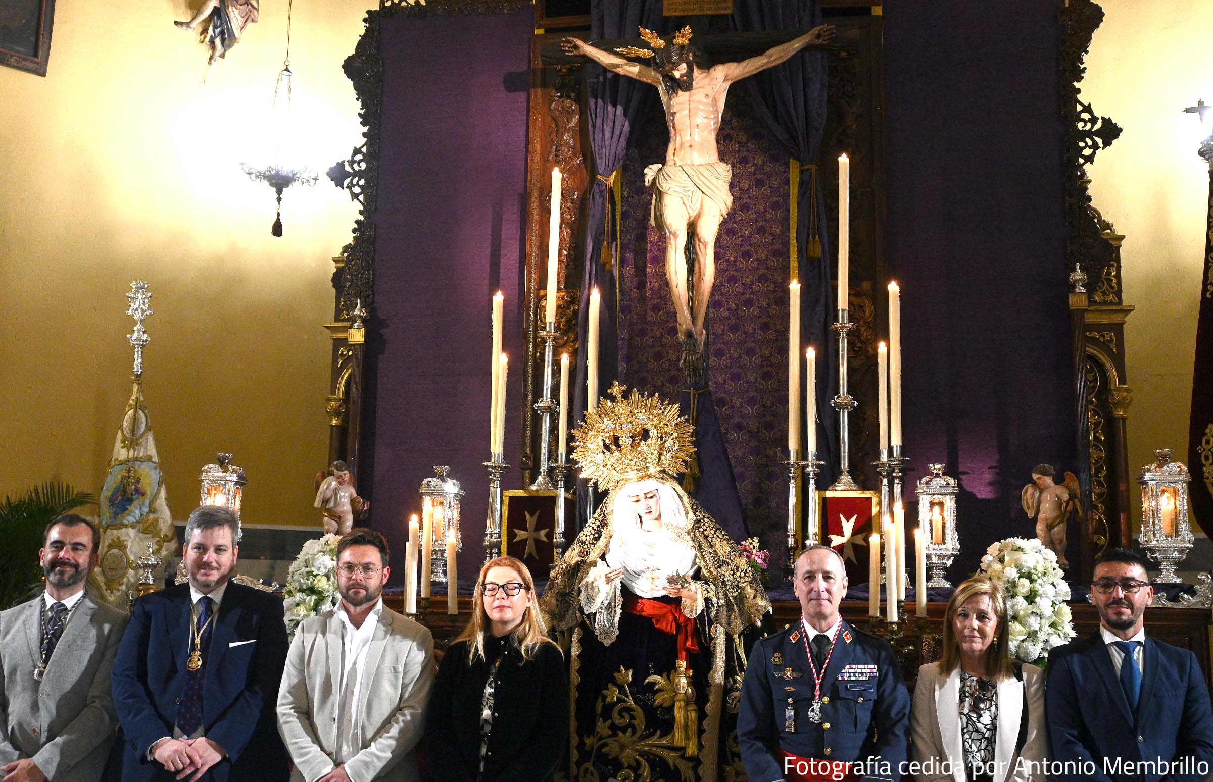 Tras el acto la Hermandad celebró una misa a la que asisitó el general de Brigada Enrique Fernández y le impuso a Nuestra Señora de los Dolores el fajín de general. El primer teniente de alcaldesa, Carlos Amado, junto a otros concejales de la Coportación estuvieron presentes en la ceremonia.