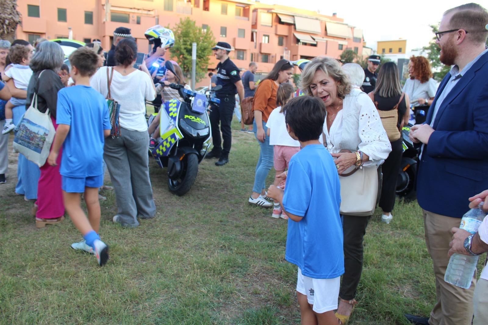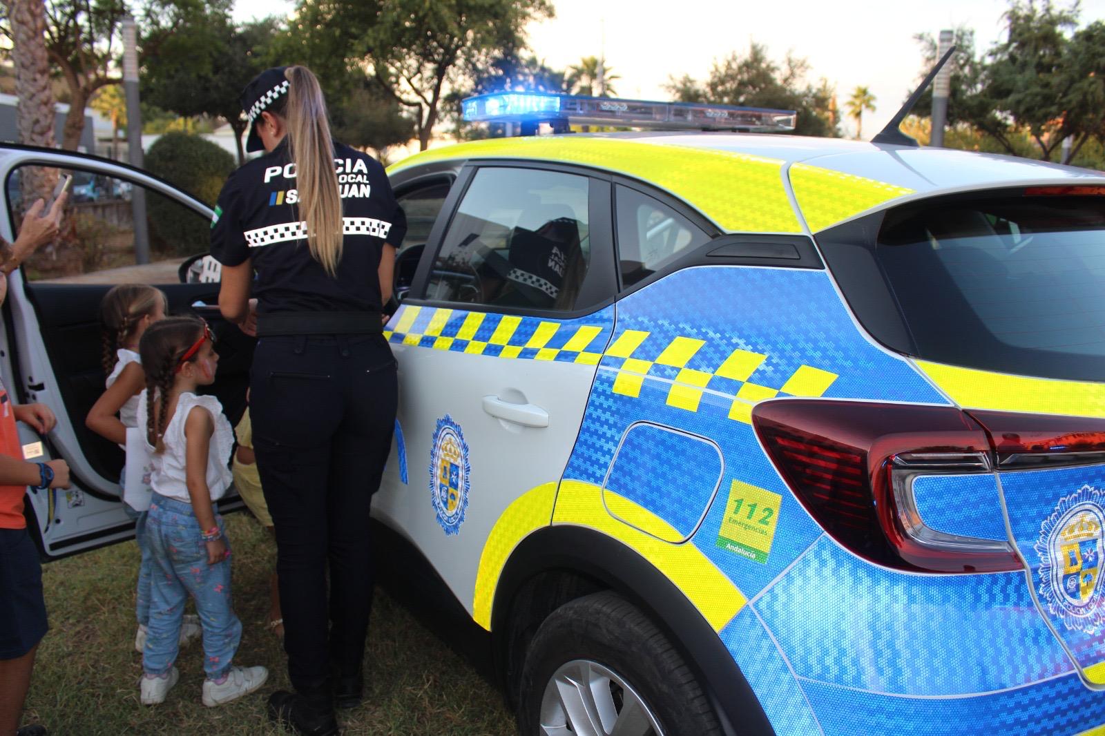 El Ayuntamiento de San Juan de Aznalfarache presentó los nuevos vehículos de la Policía Local en un acto dirigido a las familias del municipio, donde los más pequeños pudieron montarse en los patrulleros y las motos. También se realizó una exhibición de vuelo de la Unidad Área Policial de San Juan y una demostración del trabajo que realizan los perros de la Unidad Canina de la Policía Local de Camas.