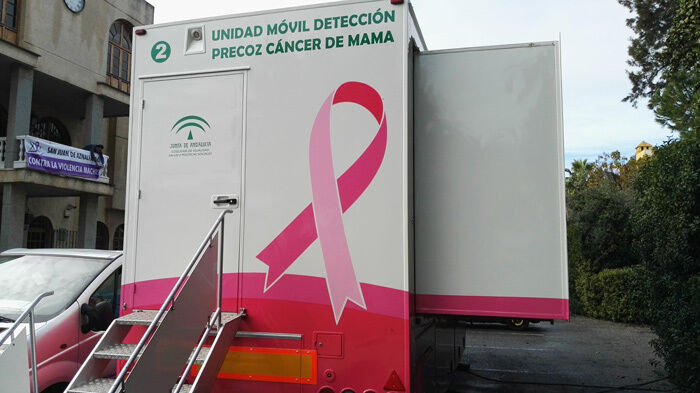 La Unidad móvil de detección precoz del cáncer de mama se encuentra ubicada desde hoy a las puertas del Ayuntamiento de San Juan de Aznalfarache para atender a la realización de mamografías a mujeres de entre 50 y 69 años de edad. Estas mujeres habrá recibido una cita previa por correo ordinario indicándoles el día y la hora en el que tienen que acudir. El resultado de la prueba se enviará también por correo ordinario.
