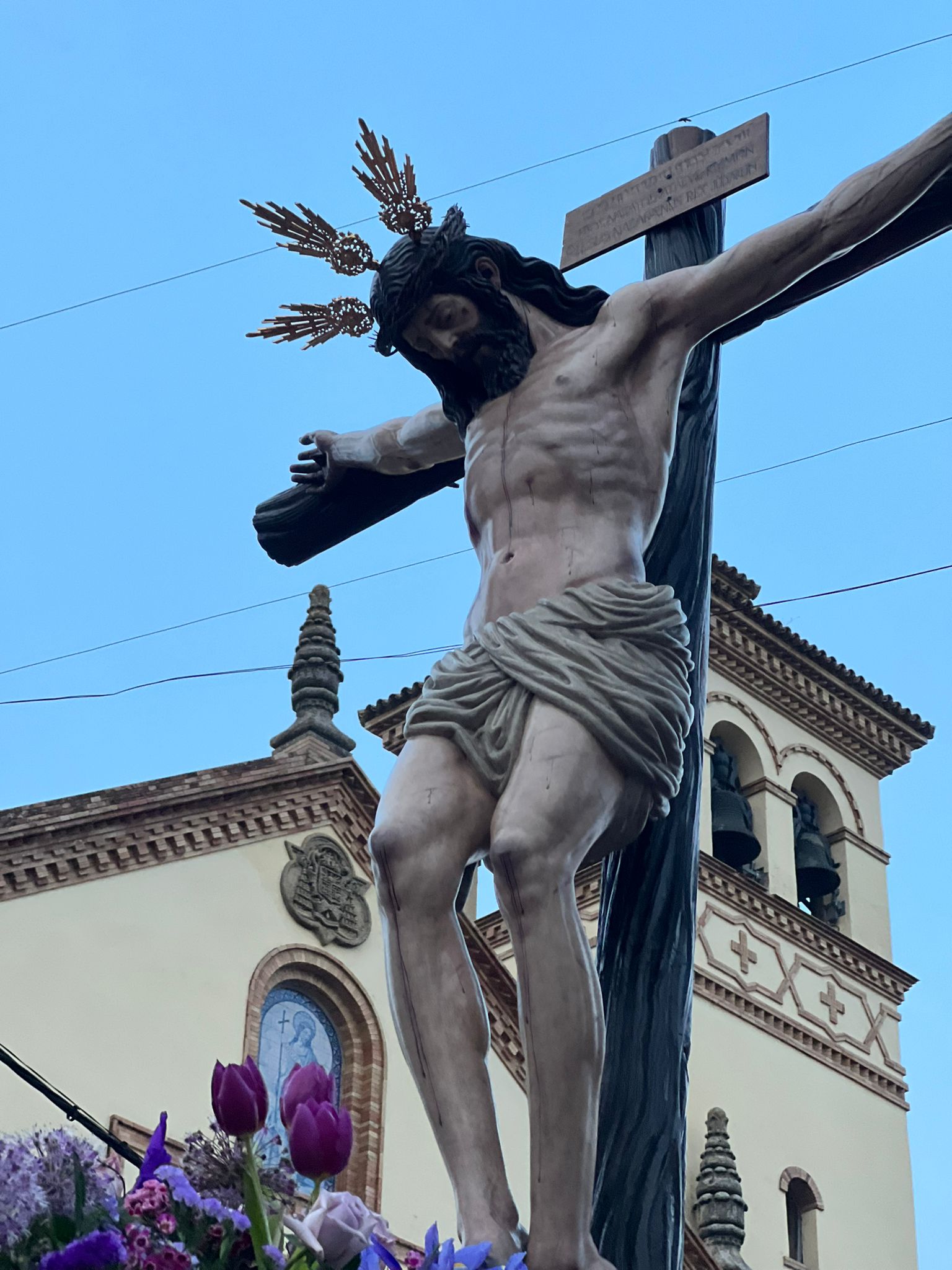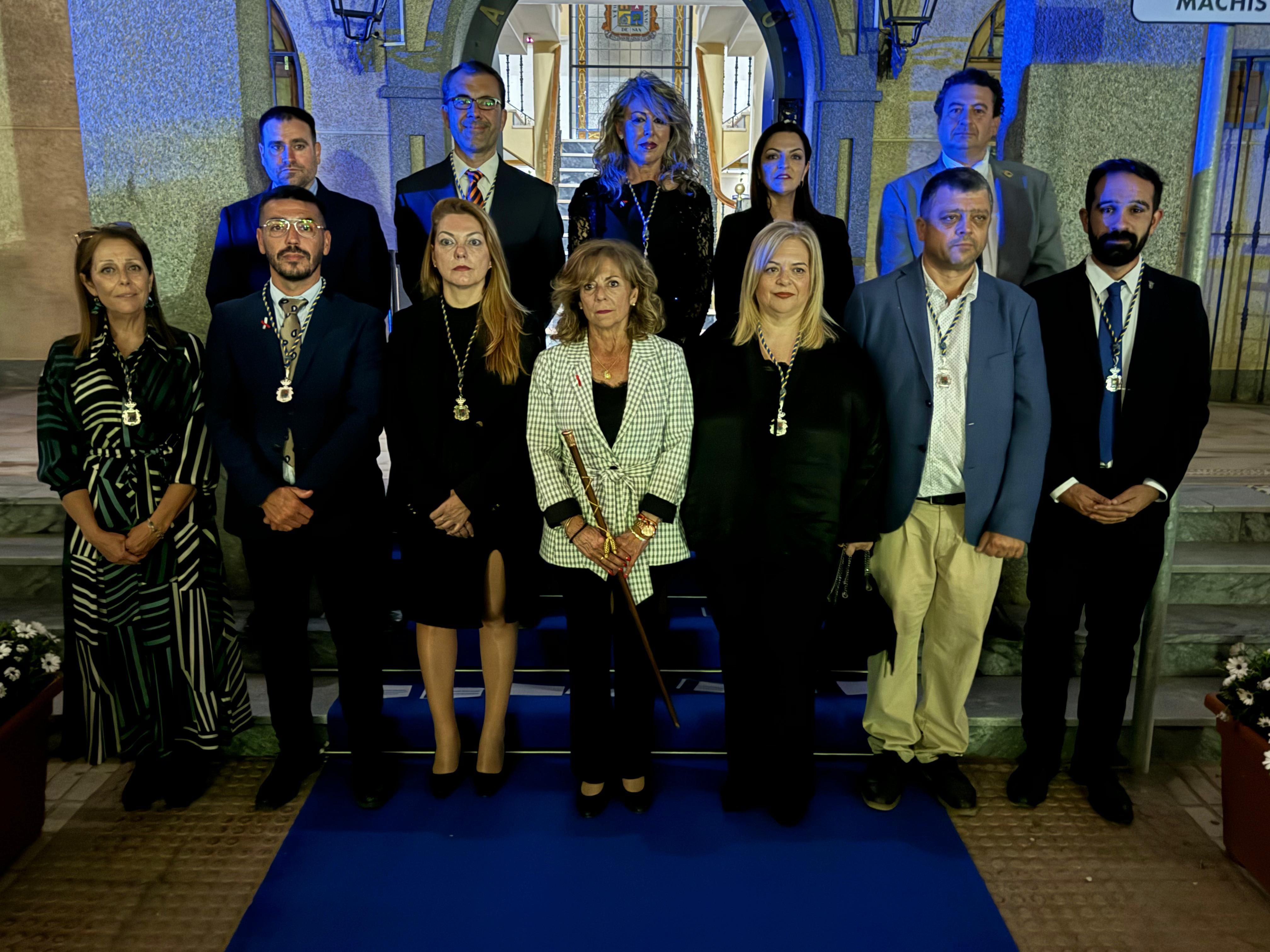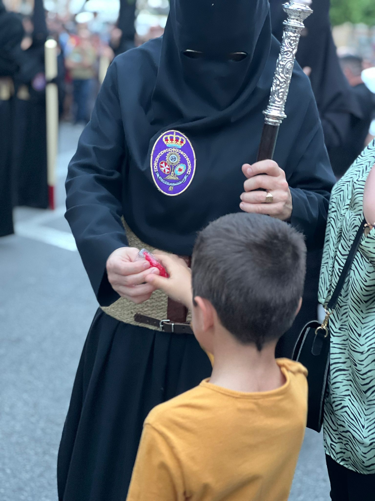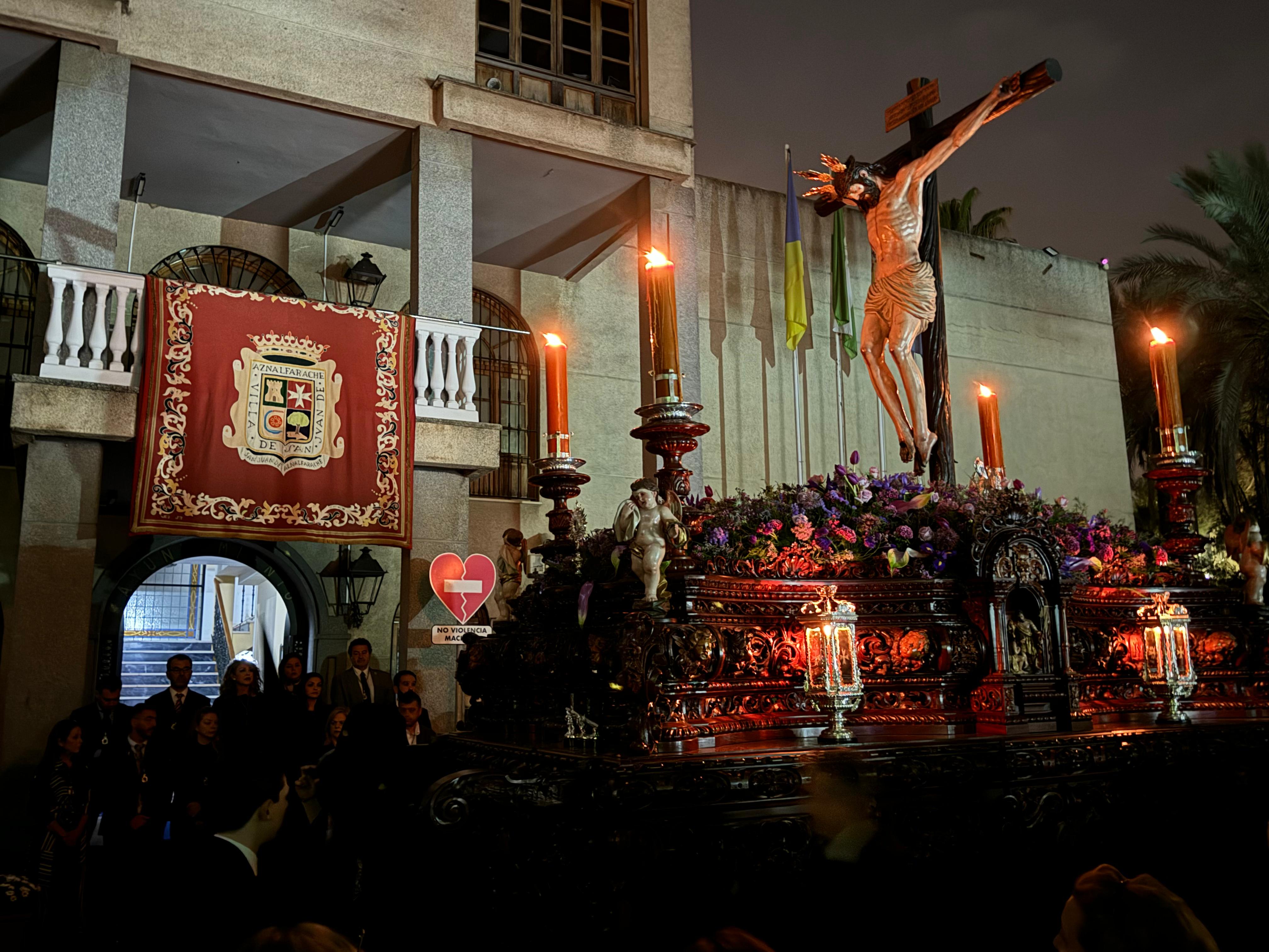 Caía la noche y la cofradía llegaba a las puertas del Ayuntamiento. Aquí se vivió otro momento cargado de recogimiento y emoción cuando José Manuel Peña cedió a la alcadesa del municipio, María Luida Moya, la levantá. Y lo hizo tras unas palabras con su cuadrilla cargadas de emoción y sentimiento para dedicársela a Paco. Y con el corazón la levantaron al cielo.