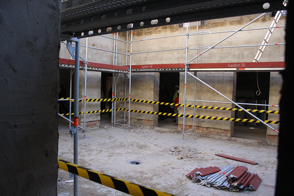Durante estos meses de intervención, que avanza a buen ritmo, se han asegurado y estabilizado las medianeras y reorganizado los accesos y escaleras, además de afrontar la construcción completa del cerramiento del patio interior y la adecuación interior completa (instalaciones, distribución interior, carpinterías interiores y acabados arquitectónicos).
