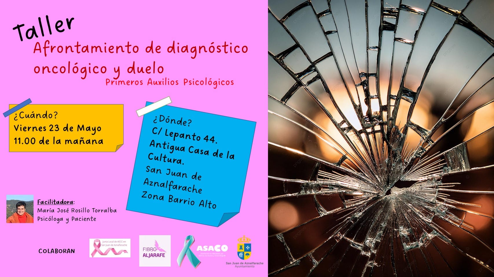 Las actividades organizadas con motivo del Día de Acción por la Salud de las Mujeres se iniciarán el viernes 23 de mayo con un taller que impartirá la psicóloga María José Rosillo, en la actual sede de la Asociación Fibroaljarafe y la Asociación Española contra el Cáncer. "Afrontamiento de diagnóstico oncológico y duelo. Primero auxilios psicológicos", es el nombre de este taller para el que no es necesario inscribirse con anterioridad. Tendrá lugar a partir de las 11:00 horas en la antigua Casa de la Cultura. Colabora la Asociación Asaco.