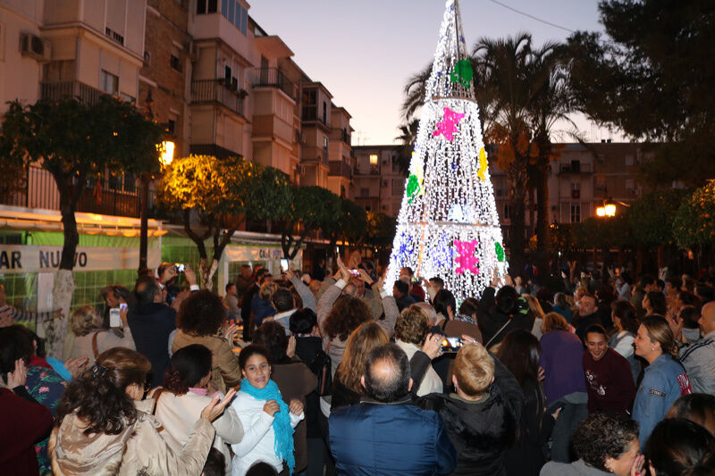 La inauguración del alumbrado navideño corrió a cargo del alumnado del Colegio Tartessos con su Director Manolo Ramos, colectivos vecinales de la barriada Guadalajara y el alcalde de San Juan, Fernando Zamora.
