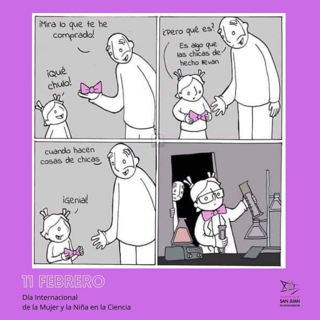 A lo largo de la semana se difundirán en las redes sociales del Ayuntamiento imágenes de mujeres que son un referente en el campo científico y tecnológico explicando cuáles han sido y son sus aportaciones a la sociedad y su desarrollo. De esta forma, no sólo se anima a que las jóvenes de San Juan estudien este tipo de carreras universitarias, también se pretende romper con la imagen estereotipada de que las mujeres deben dedicarse a campos que tradicionalmente se les ha asignado por su condición sexual.