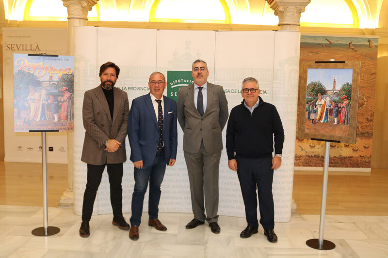 La Casa de la Provincia de Sevilla ha acogido la presentación oficial del cartel de la Cabalgata de Reyes Magos de San Juan de Aznalfarache, obra del pintor sevillano Juan Charro.