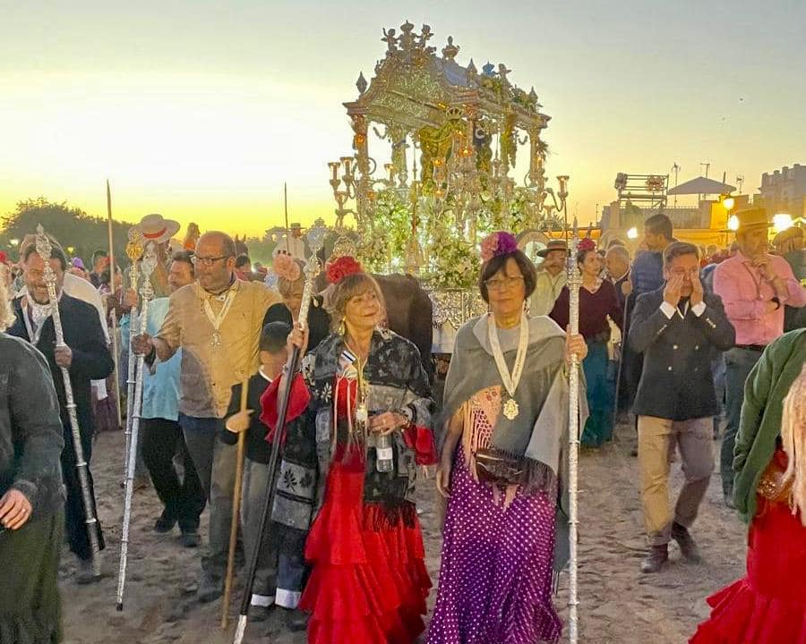 Fin de semana cargado de emociones para la Hermandad del Rocío de San Juan que culminó con el salto a la reja a las 2:56 horas, instante en el que el Simpecado de la Hermandad Matriz de Almonte ha cruzado la Concha Peregrina que hace de pórtico del Santuario de la Virgen del Rocío, procedente del rezo del Santo Rosario