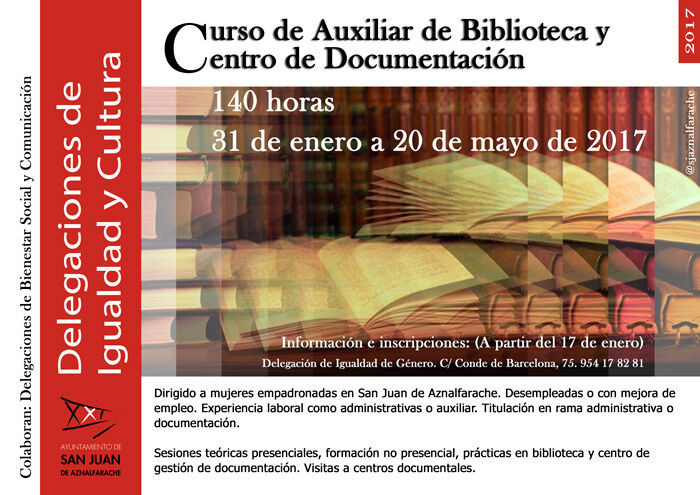 Los requisitos para participar en este curso son estar empadronada en San Juan, en situación de desempleo o de mejora laboral, y tener titulación en la rama administrativa o documentación. Se valorará, asimismo, la experiencia como administrativas o auxiliares de las solicitantes. Las inscripciones se pueden formalizar a partir del próximo martes 17 de nero en la delegación de Igualdad, sitauada en la calle Conde de Barcelona, número 75.