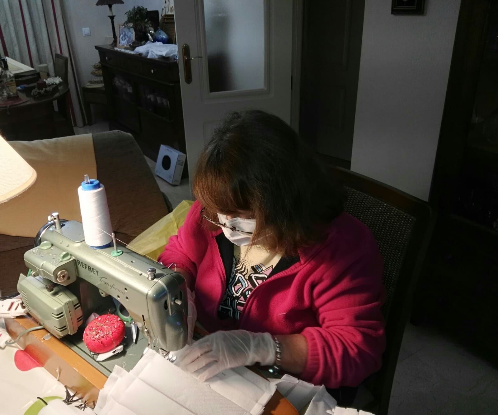 30 mascarillas lleva ya hechas Lola, que se enteró por una amiga de la existencia de este grupo de costuteras solidarias. «No tengo mucha experiencia en costura, pero decidí sacar mi máquina de coser y empezar a fabricar mascarillas con las explicaciones de Lucía. Mi marido y mi hija se encargan de la casa y de la comida, mientras yo coso. Me pareció una iniciativa muy bonita y necesaria y no dudé un solo segundo en colaborar y me alegro enormemente de pertenecer a este grupo de voluntarias». expresa Lola.