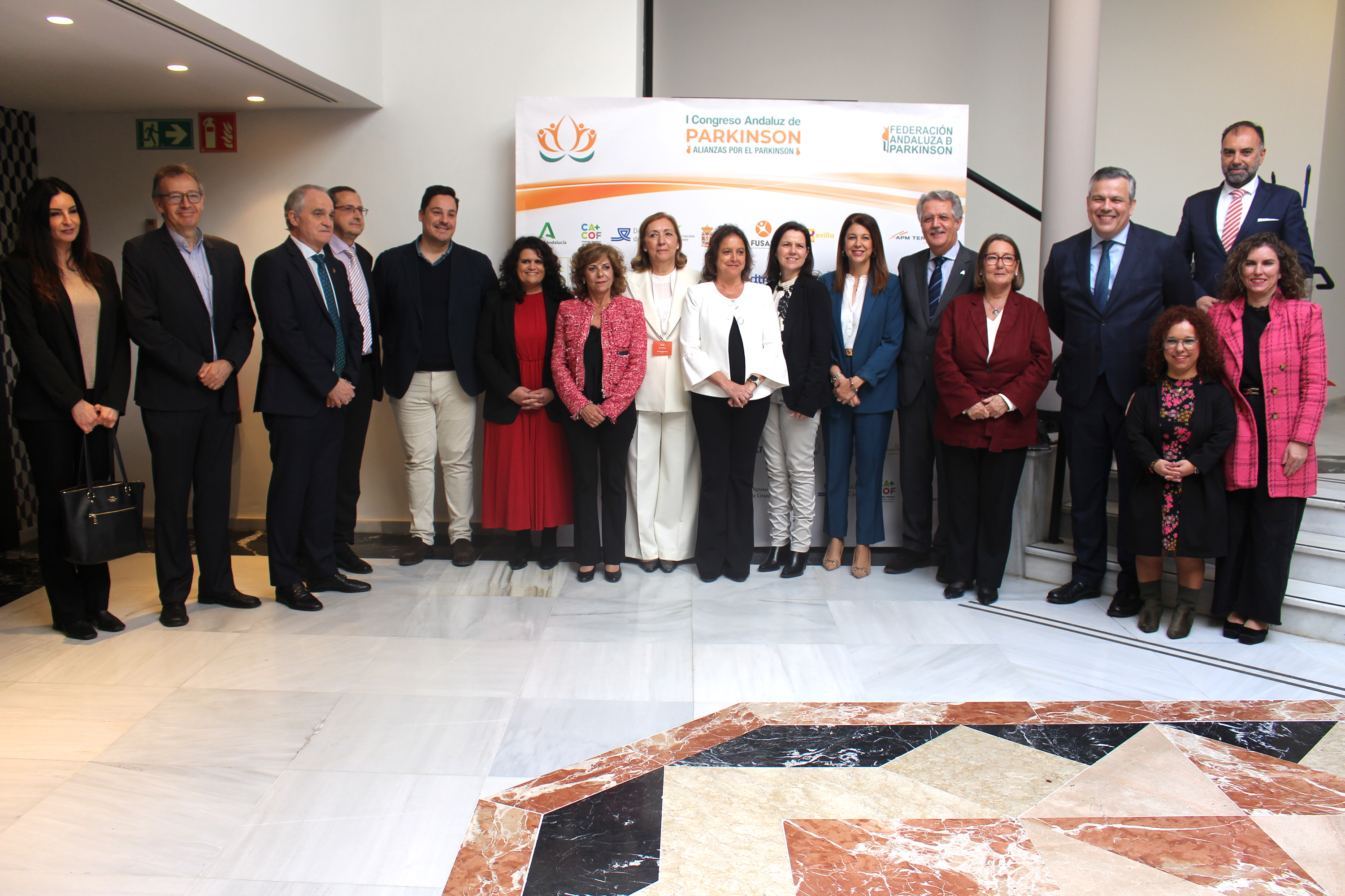 La Consejera de Salud, Catalina Carrasco, la presidenta de la Federación Andaluza de Párkinson, Carmen Giráldez, y la alcaldesa de San Juan, Mª Luisa Moya, junto a otros responsables de diferentes entidades sociales, estuvieron presentes en la inauguración de este evento que tiene por objetivo la coordinación entre todos los agentes implicados en la enfermedad de cara a conseguir un abordaje integral y multidisciplinar de la enfermedad.