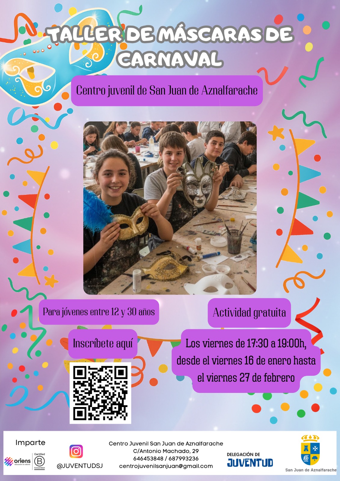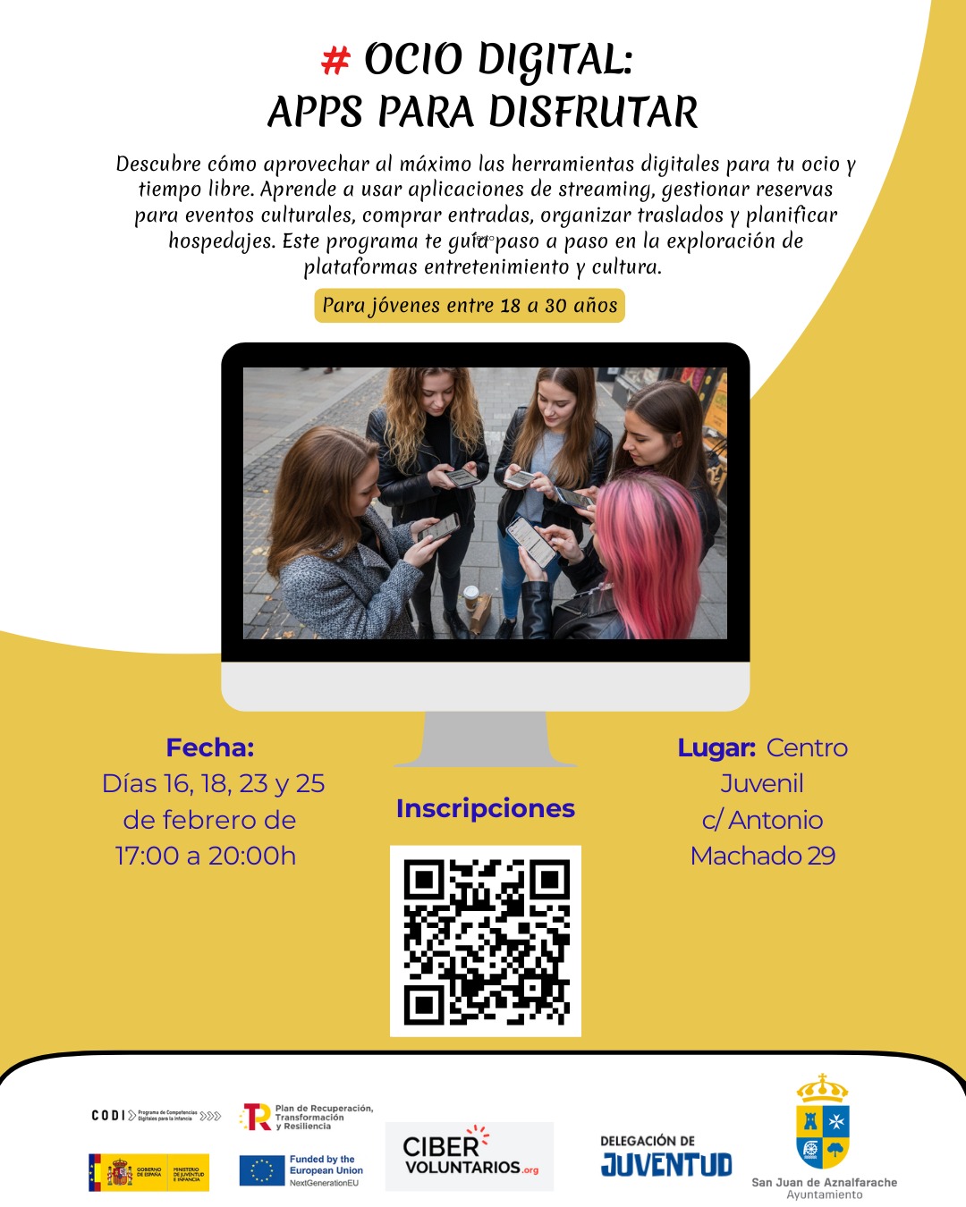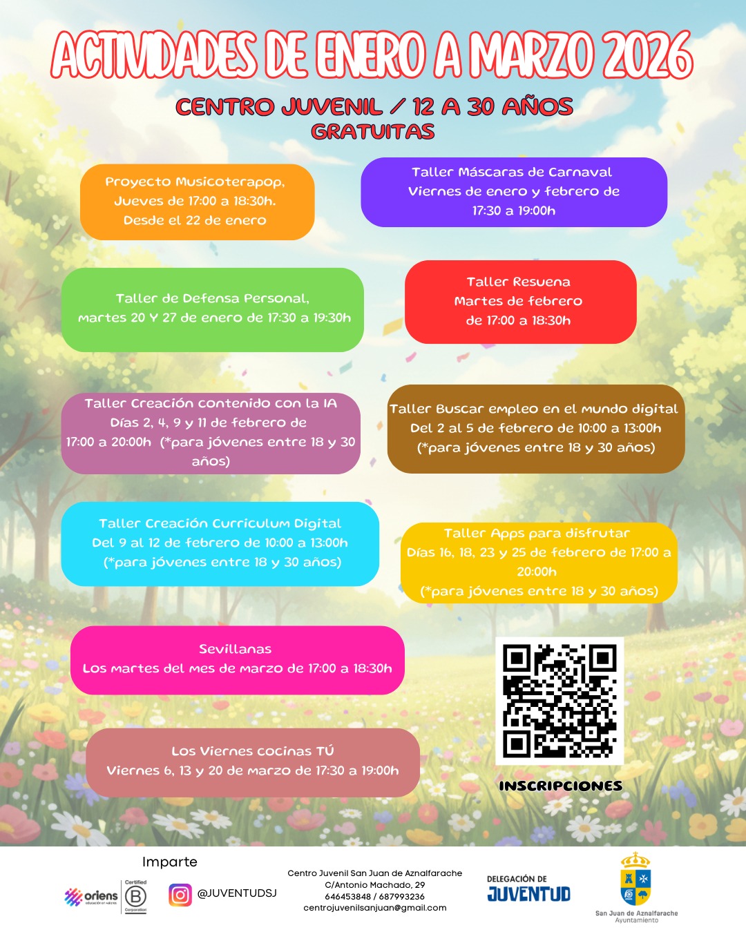 Además de la programación prevista durante todo el curso 25-26, el Centro Juvenil de San Juan de Aznalfarache, ha preparado varios talleres y actividades especiales que se van a desarrollar durante el primer trimestre de 2026. Volvemos a apostar por actividades demandadas por la juventud sanjuanera que combinan el ocio con la formación y las herramientas para la búsqueda de empleo.