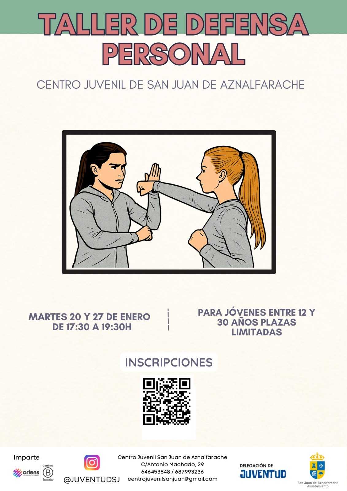 Durante el mes de enero, y todos los martes, es el momento de este taller de Defensa personal donde prevenir situaciones de riesgo, a controlar el miedo y el estrés para reaccionar con calma, y a aplicar técnicas físicas efectivas.