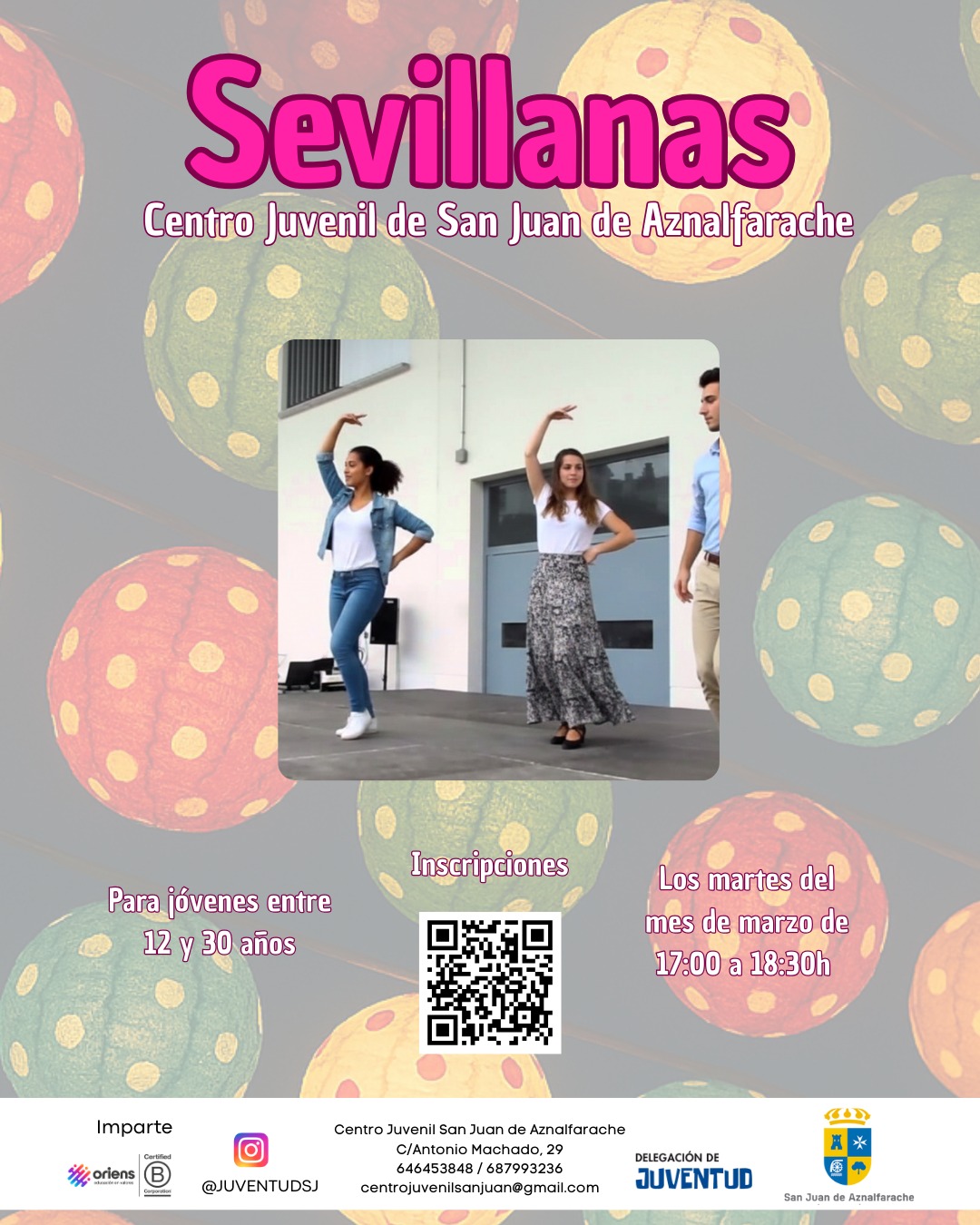 Este mes de marzo, cada martes por la tarde, abrimos un espacio para aprender a bailar sevillanas desde cero, disfrutar del ritmo y compartir un buen rato entre jóvenes. No hace falta experiencia previa: solo ganas de moverte, reír y dejarte llevar por el compás.