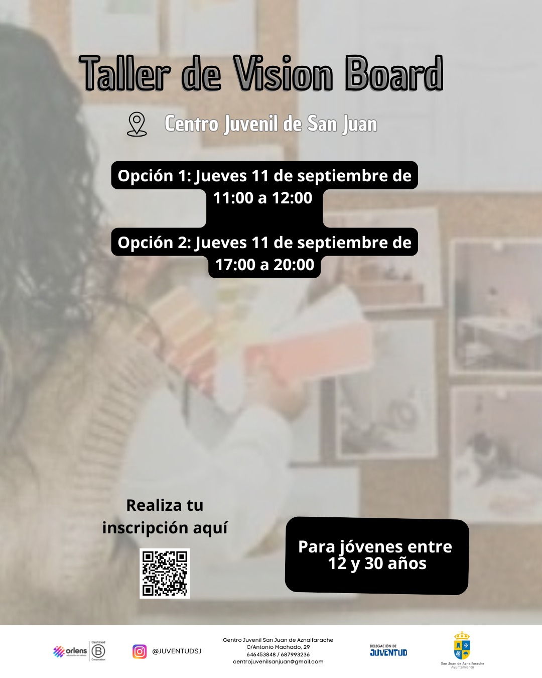 Un taller diseñado para ayudar a los adolescentes a visualizar sus metas, sueños e intereses personales a través de la creación de un vision board (tablero de visión), fomentando la reflexión, la creatividad y la motivación.