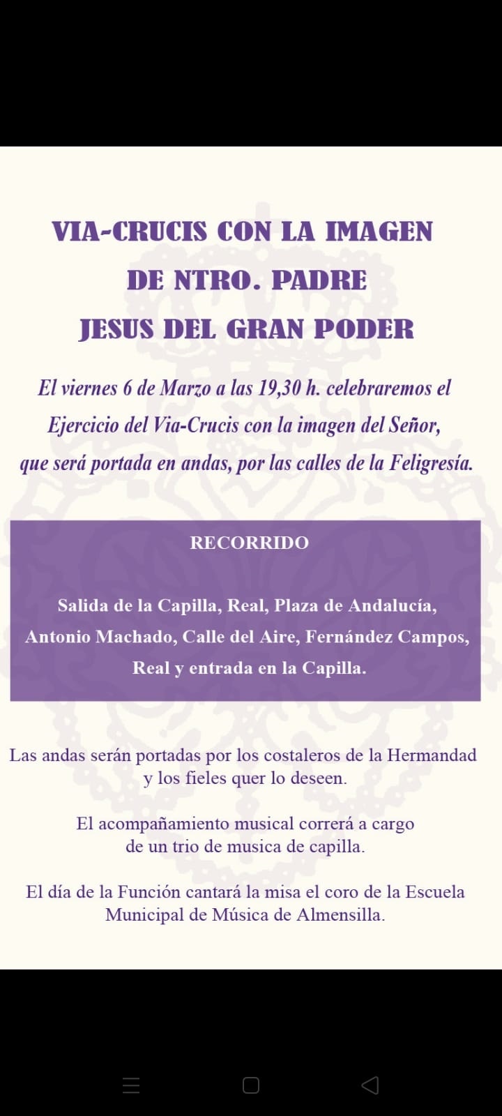 El Vía Crucis recorrerá las calles de la feligresía de la capilla del Rosario