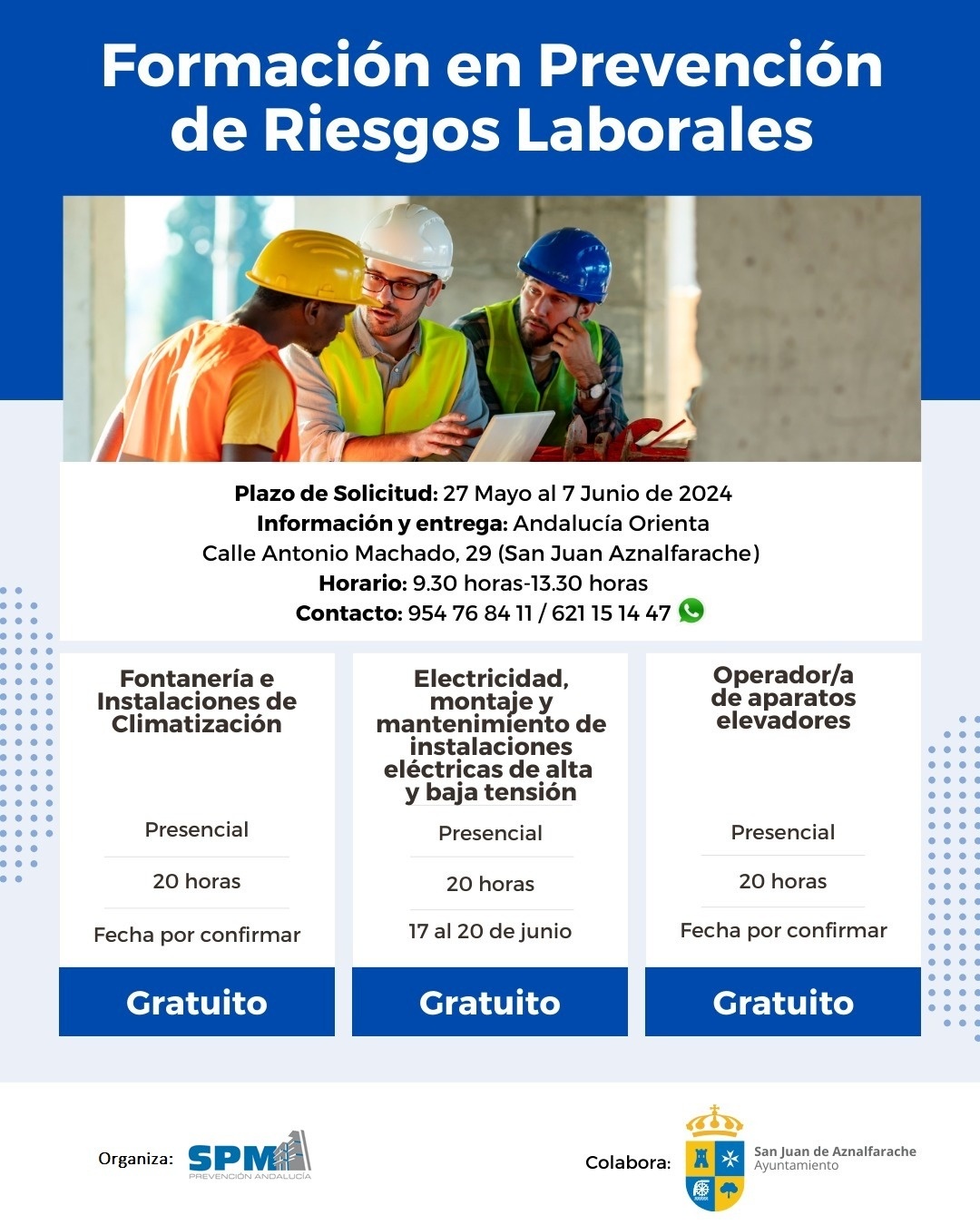 El Ayuntamiento de San Juan de Aznalfarache organiza dos cursos de Prevención de Riesgos Laborales homologados por la Fundación Laboral de la Construcción