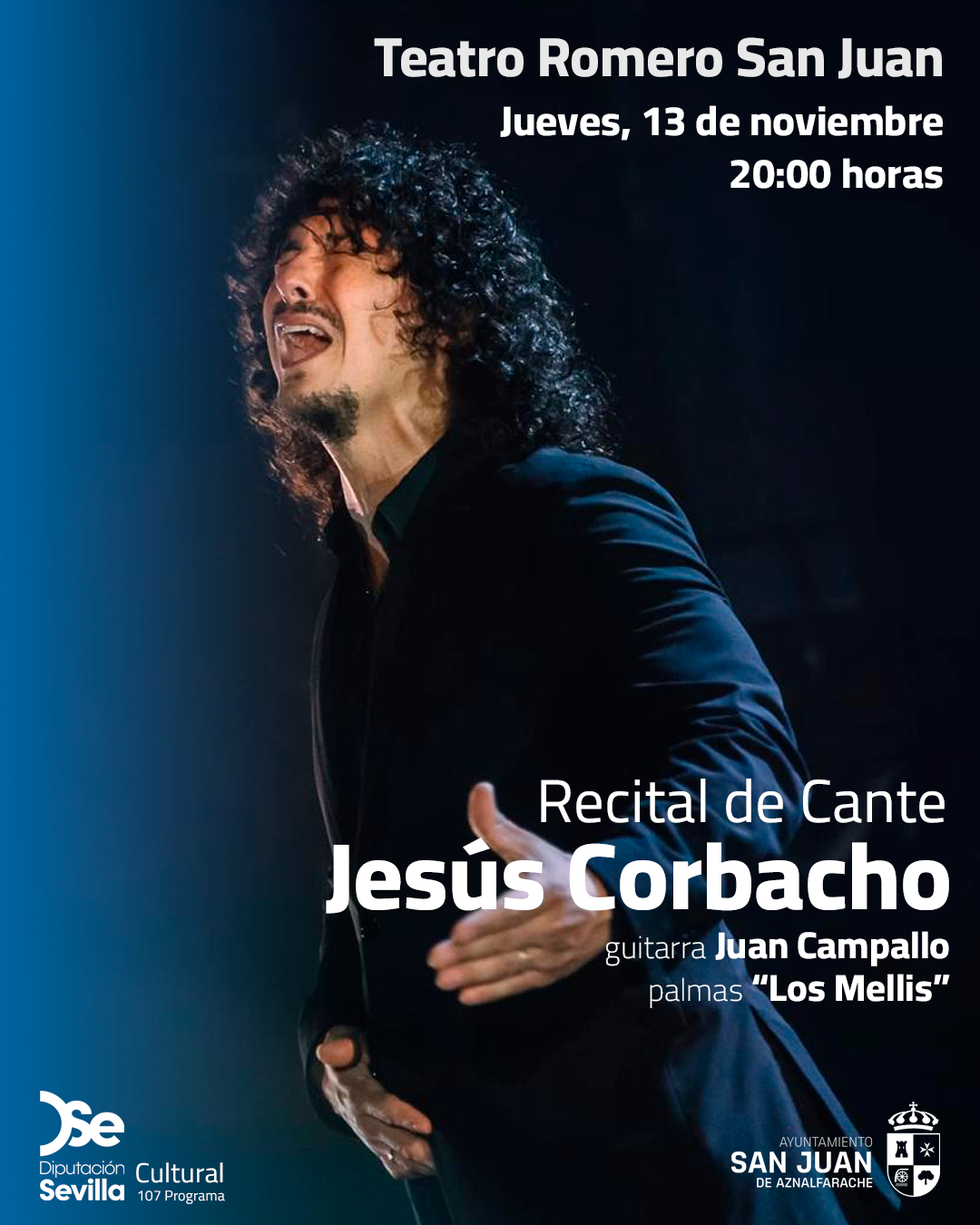 El teatro Romero San Juan acoge está actuación del cantaor onubense. Será el jueves 13 de noviembre a las 20:00 horas