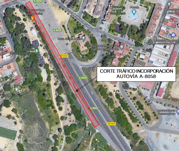 Emasesa realizará obras de mantenimiento del firme en la incorporación a la autovía que discurre paralela al parque de los Pitufos.