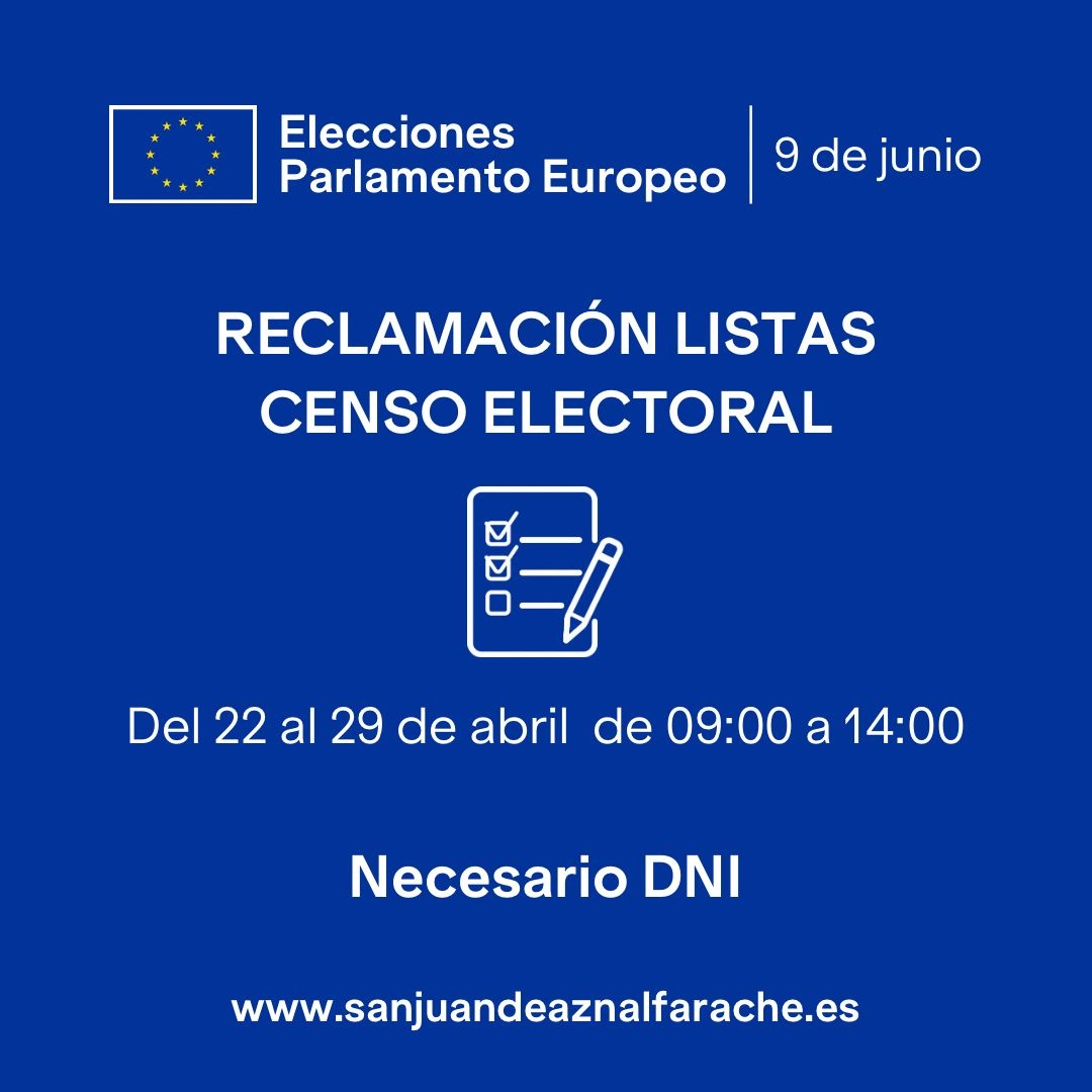 Desde el 22 al 29 de abril se puede realizar la revisión del censo electoral en el Ayuntamiento de San Juan de Aznalfarache, en horario de mañana.