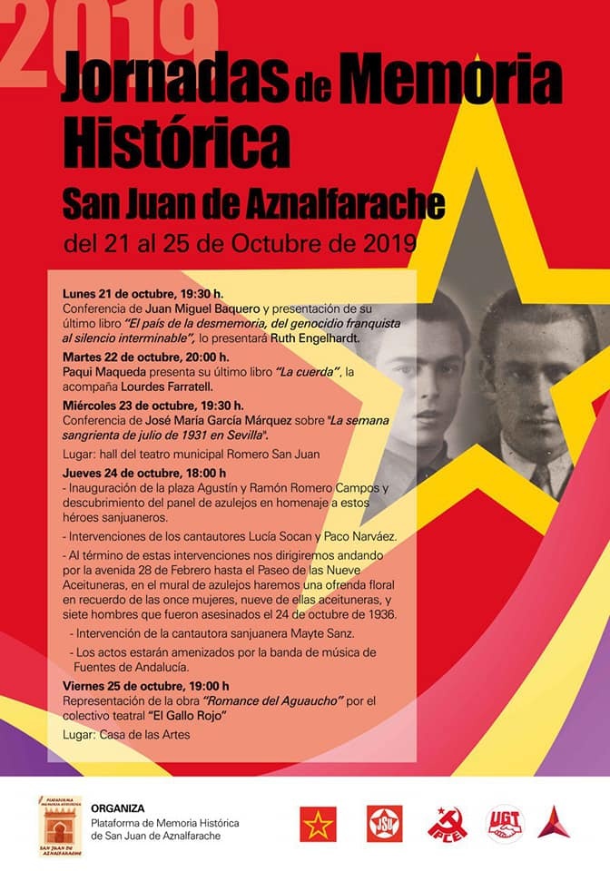El acto comenzará a las 18:00 en la plaza dedicada a estos dos jóvenes sanjuaneros y culminará en el Paseo de las Nueve Aceituneras con una ofrenda floral a las trabajadoras asesinadas el 24 de octubre 1936.