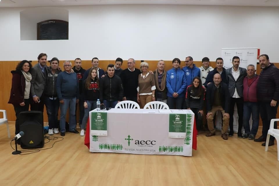 Masiva presencia de colectivos, deportistas y entidades deportivas en la presentación de la I Marcha Contra el Cáncer que ha tenido lugar está tarde en la Casa de las Artes.
