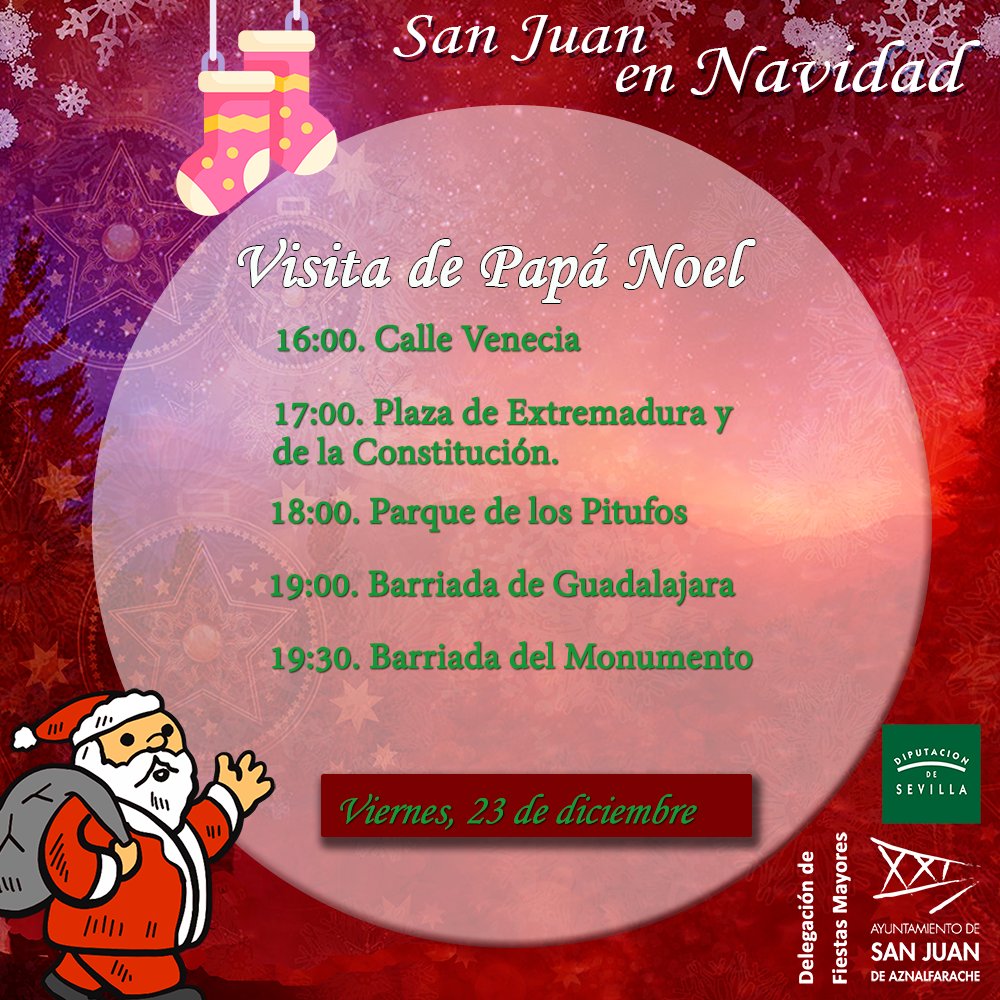 San Juan acogerá la visita de Papá Noel el viernes 23 de diciembre de 16:00h a 20:00h. En un vehículo muy especial recorrerá las calles de San Juan haciendo parada en los puntos más estratégicos.