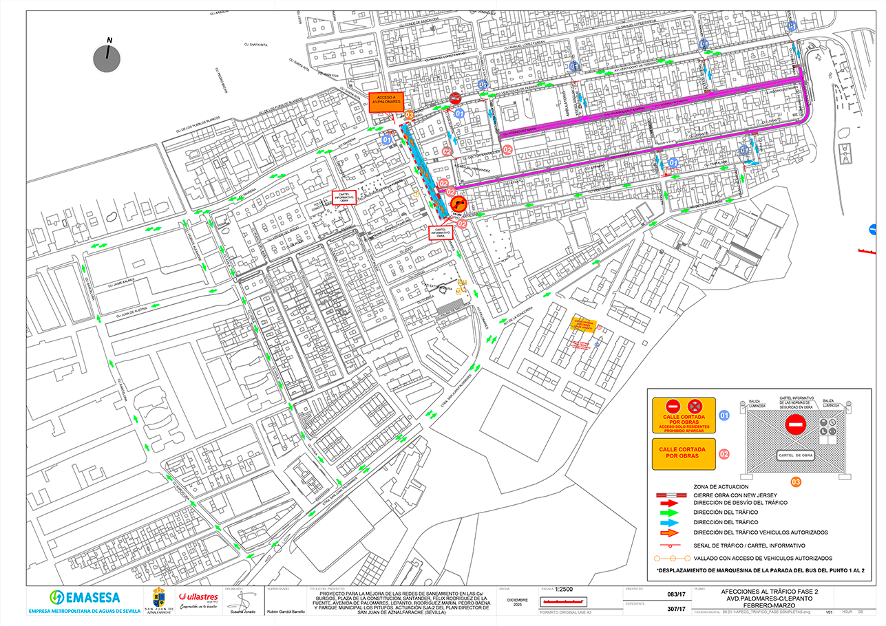 Los cambios en la ordenación del tráfico estarán en vigor a desde el lunes 9 de febrero, aunque desde el viernes 6 de febrero, los vecinos de las calles afectadas deben empezar a retirar su vehículos. En esta situación se encuentran las calles Lepanto, Rodríguez Marín, Pedro Baena, el tramo de la avenida de Palomares desde la calle Trafalgar hasta el cruce con la Avenida 28 de Febrero y todas las calles transversales entre la calle Rodríguez Marín y la Avenida 28 de Febrero (San Quintín, Manuel Rivero, Antonio Eslava y Manuel Collazo).
