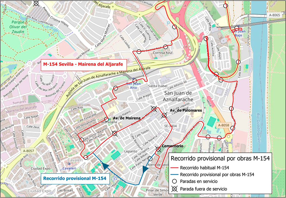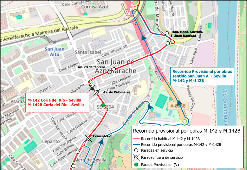 El acceso a la avenida 28 de Febrero solo será posible desde la Avenida de Mairena o bien, desde las calles Isabel la Católica y Manuel Madrazo, en la otra margen de la avenida. Se recomienda la salida hacia Sevilla a través de la Cuesta del Cros.