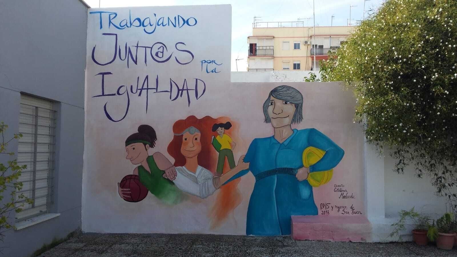 La pintura adorna la pared exterior del Centro de Información Municipal de la Mujer(CIMM) de San Juan.