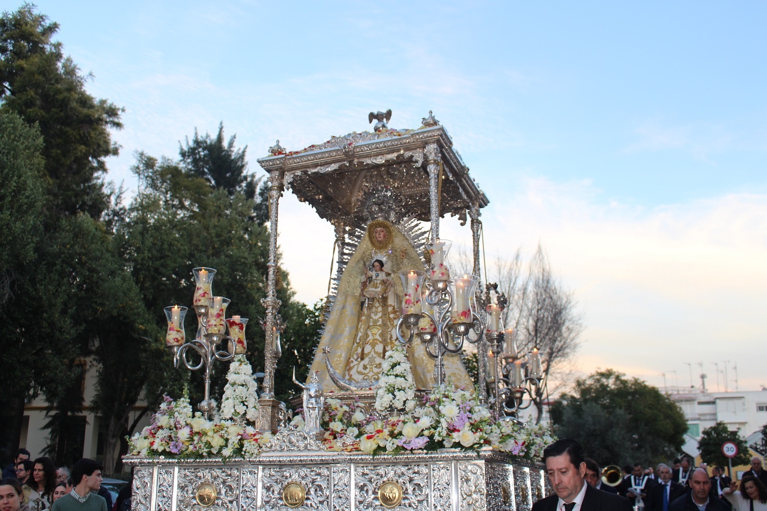A las 16:30 horas se inició la procesión desde la parroquia de San Juan Bautista, donde se congregaron numerosos vecinos que acompañaron a la patrona durante su recorrido. En el Ayuntamiento se realizó la recepción institucional por parte de la Corporación municipal donde la alcaldesa, Mª Luisa Moya, hizo entrega de una ofrenda floral a la Virgen.