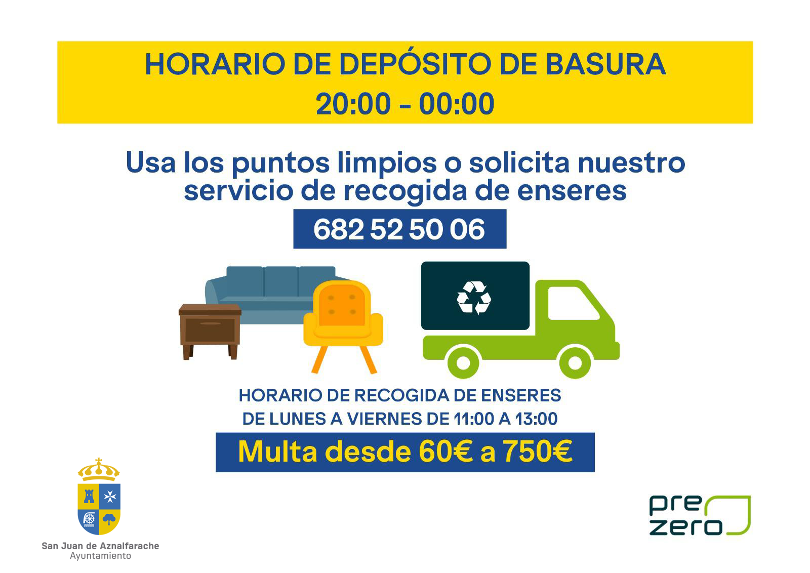 San Juan de Aznalfarache cuenta con un Punto Limpio al que se deben llevar este tipo de desechos, electrodomésticos, mobiliarios, etc. Todo aquello que no se puede depositar en los contenedores de residuos habituales.