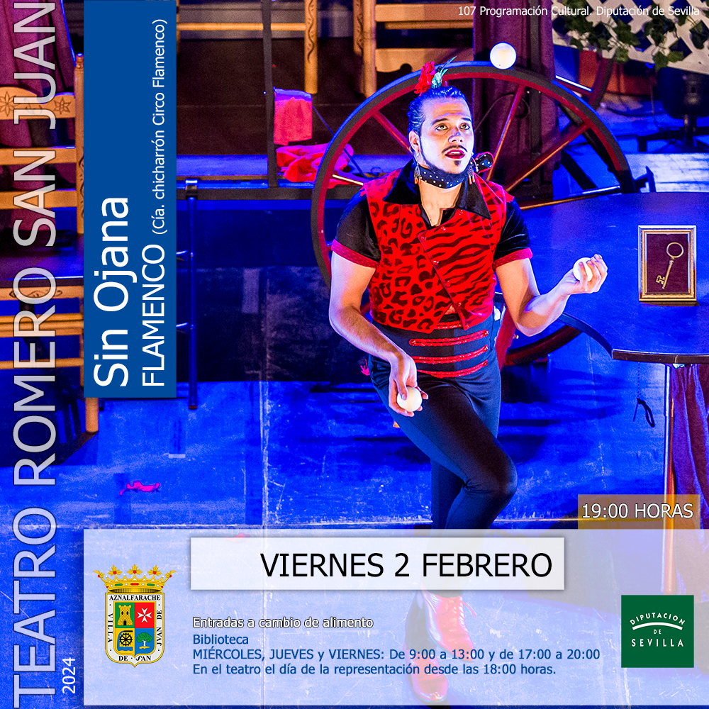 "Sin Ojana" es un espectáculo de la Cía Chicharrón Circo Flamenco que protagoniza Chicharrón, «que lleva consigo, un cante a la libertad, un homenaje al Flamenco, a la mujer y a los devenires de la vida. Un mestizaje de artes en el que entre el humor y el drama, nos atrapará para colocar unos lunares a nuestras vidas».