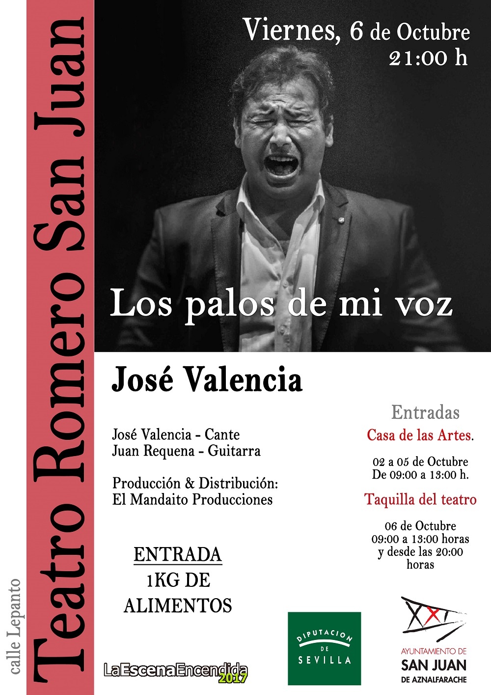 El teatro Romero San Juan acoge el viernes 6 de octubre este espectáculo flamenco con José Valencia al cante y Juan Requena a la guitarra.