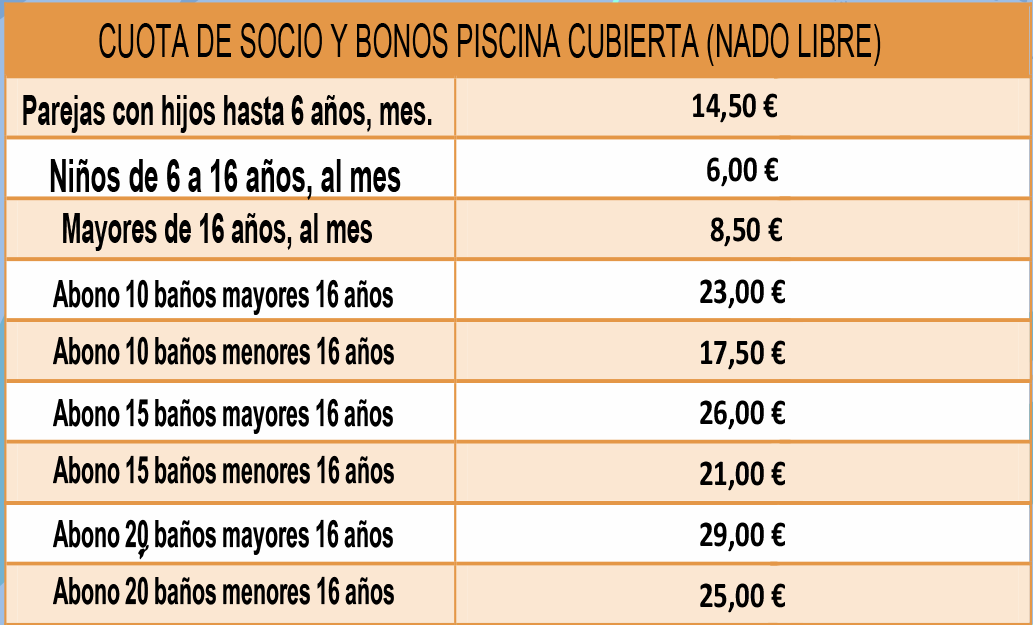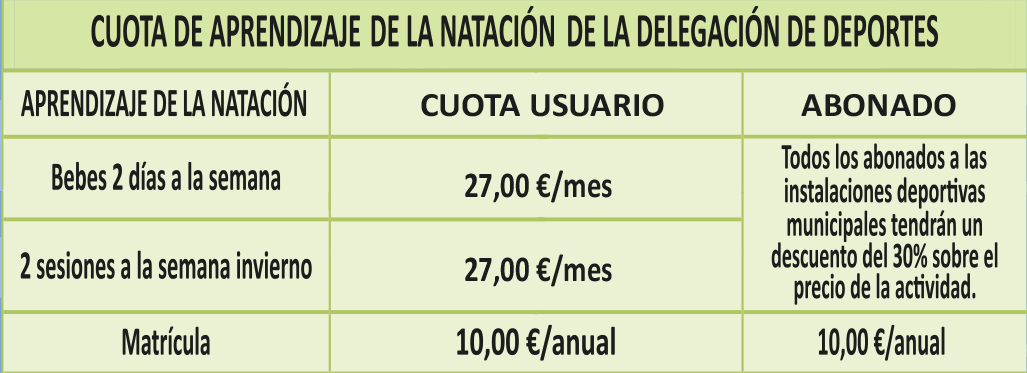 Las actividades acuáticas comienzan el 1 de octubre de 2024 y finalizan el 30 de mayo de 2025. La fecha de iniciación dependerá de la finalización de los trabajos de preparación de la piscina cubierta.